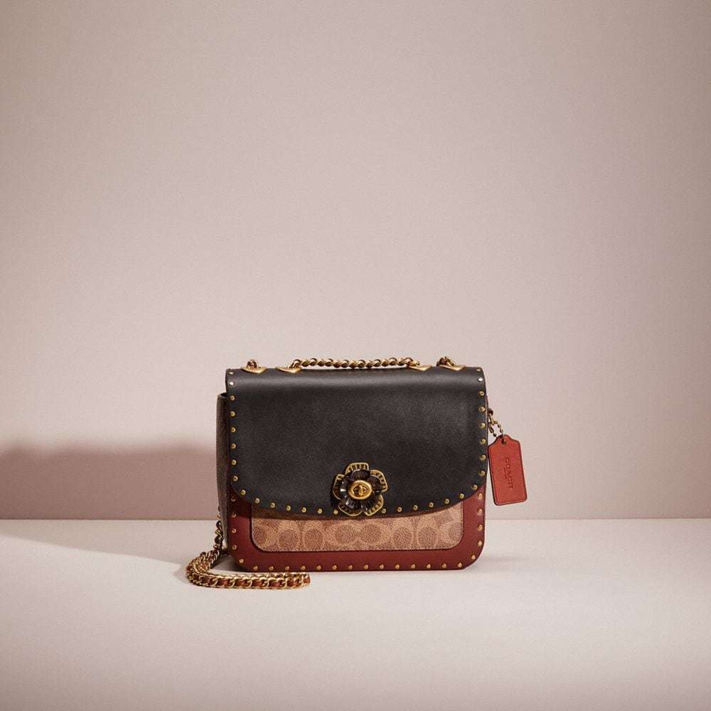 Restored Madison Shoulder Bag In Signature Canvas With Rivets And Snakeskin Detail