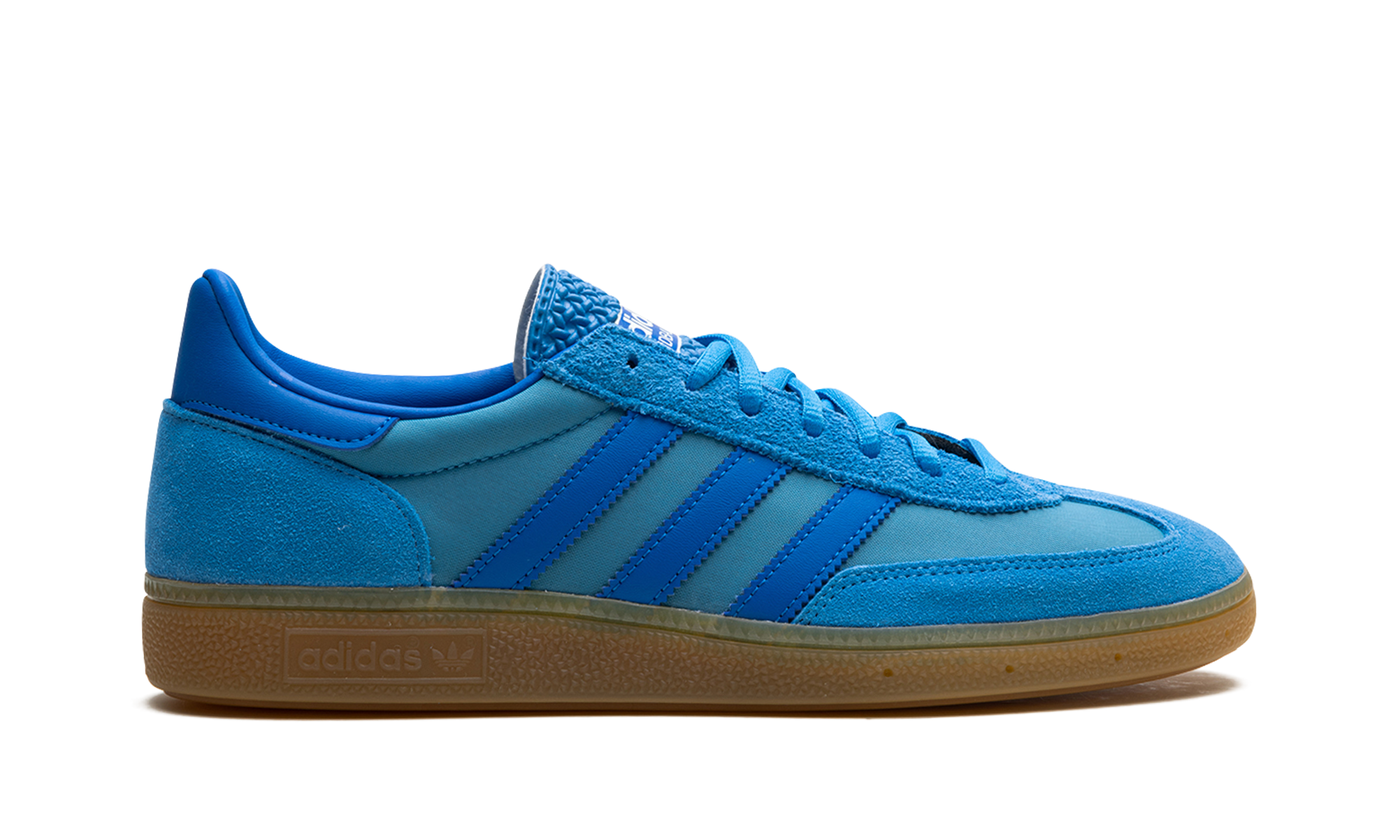 The adidas Handball Spezial “Pulse Blue/Gum” is a colorway of the retro shoe with a blue-based appearance. A bold colorway, the adidas Handball Spezial “Pulse Blue/Gum” features a Pulse Blue canvas base and tonal suede overlays on the toe, eyelets, and heel. Additional Pulse Blue accenting appears on the Three Stripes on the sides. A classic-looking “adidas Handball Spezial” logo is printed in white on the tongue. Underfoot, a gum rubber sole puts the finishing touches on the design.