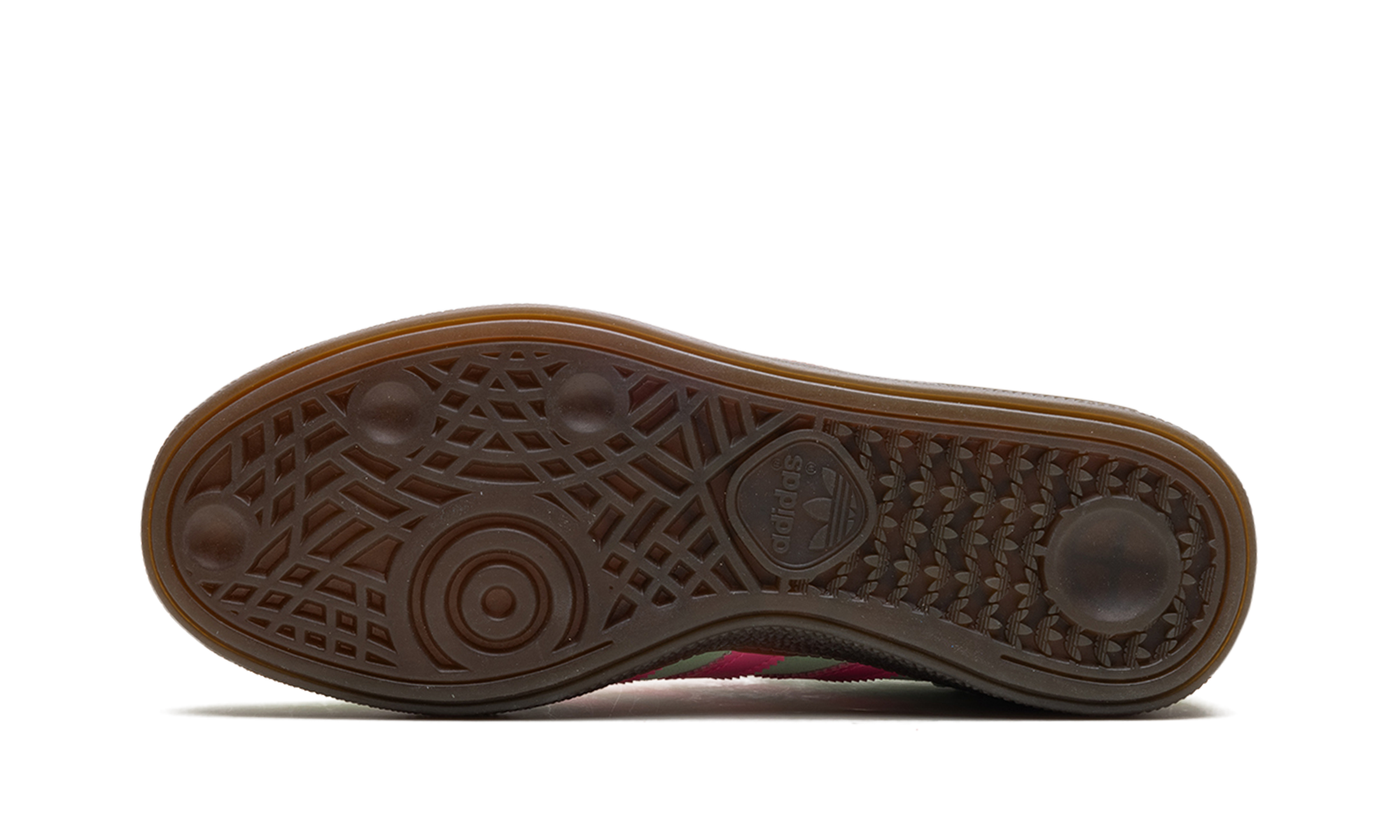 The adidas Handball Spezial “Semi Green Spark” is a head-turning colorway of the retro shoe by the popular footwear brand. The adidas Handball Spezial is a popular, casual sneaker with a versatile silhouette. On this colorway, the shoe features a Semi Green Spark suede upper with Lucid Pink leather Three Stripes on the sides. More Lucid Pink accenting can be found on the leather heel tab, laces, and on the “adidas” branding printed on the tongue. The shoe’s design is rounded into form with a dark gum rubber sole.