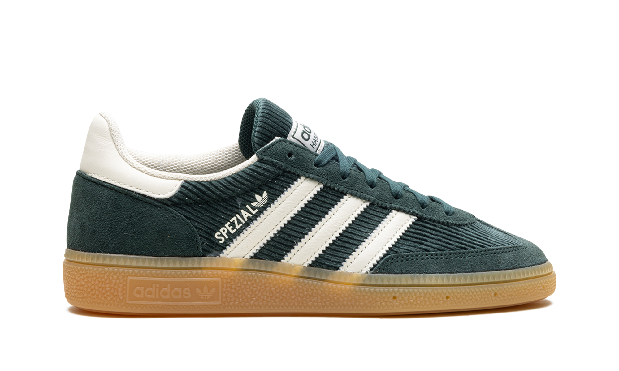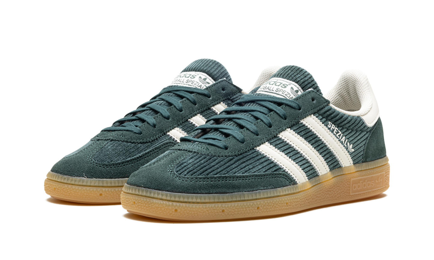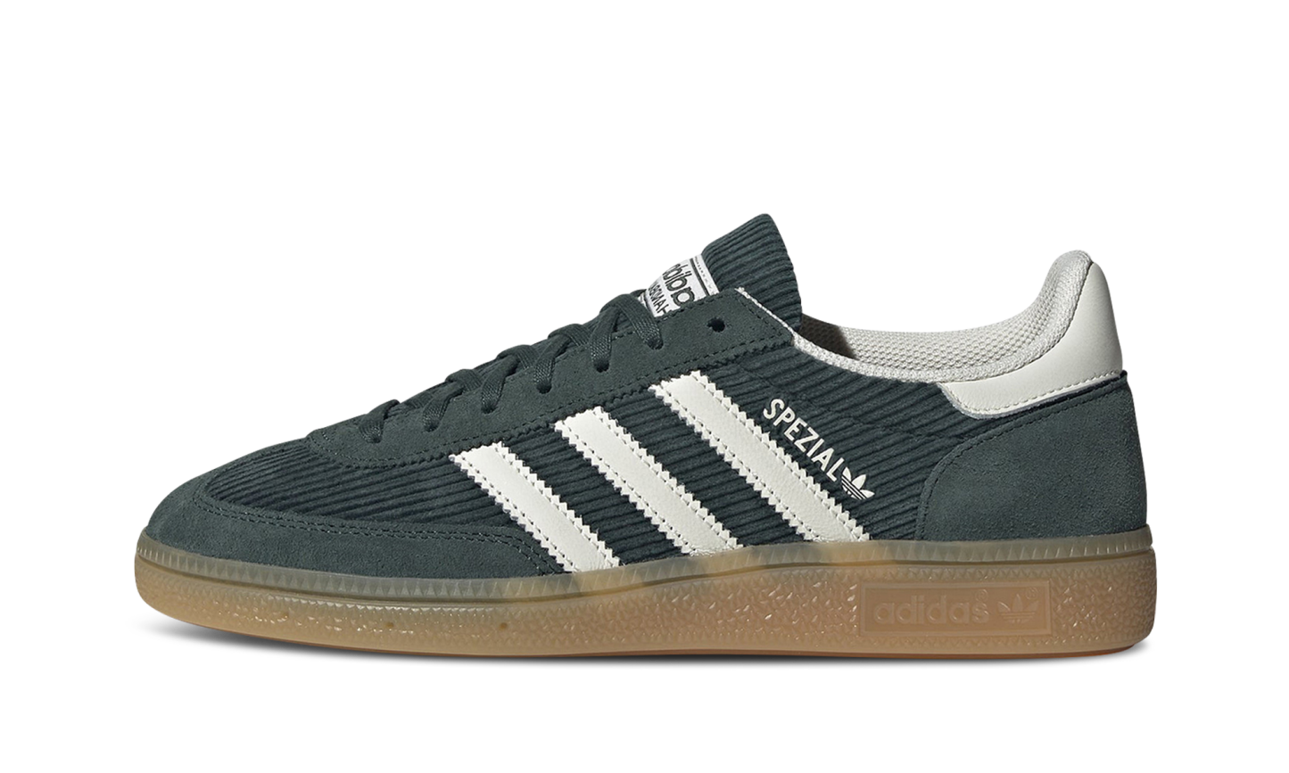 Embrace retro style with the Adidas Handball Spezial W in Mineral Green. This classic silhouette features a soft suede upper and a timeless gum rubber outsole for a vintage vibe and reliable grip. Iconic Adidas branding completes the look. Add a touch of sporty cool to your wardrobe with these stylish, heritage-inspired sneakers.