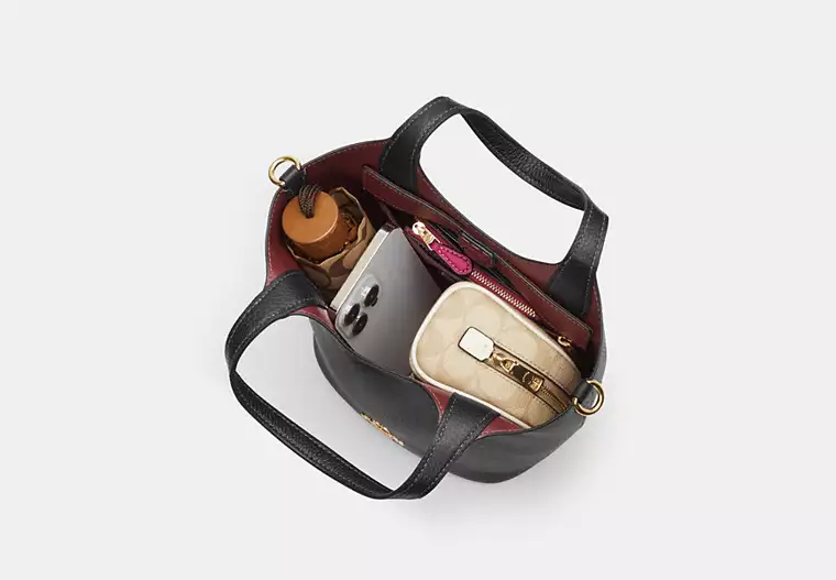 Splash. Our Hanna bag is a perfect bucket. Crafted of double face leather, this bucket bag was designed with style and versatility in mind, with room for your wallet, phone and other essentials. It travels well, and is easily worn crossbody or carried by its handles. Its secure magnetic snap closure makes opening and closing it, well, a snap. Looking for women's leather shoulder bags that are as effortless as they are elegant? Hanna has it all.