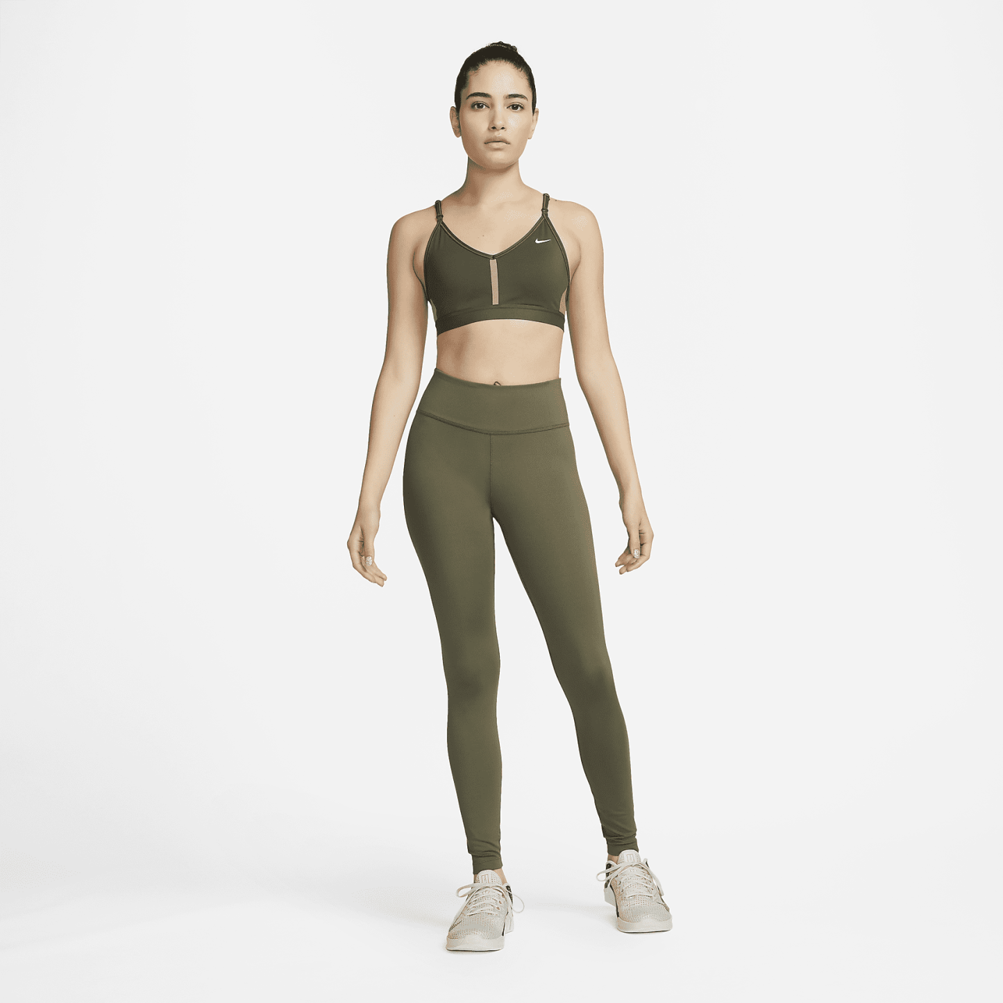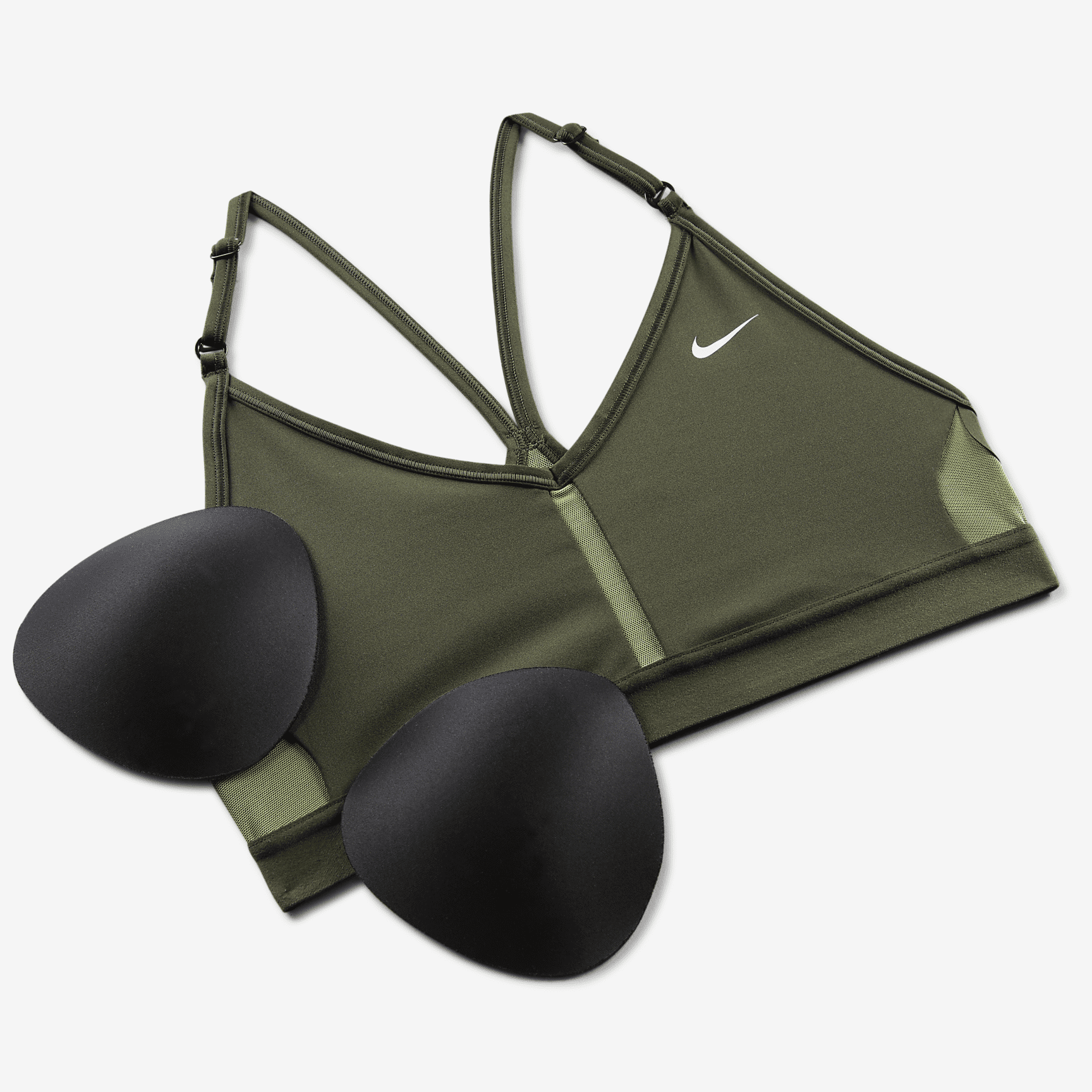 The Dri-FIT Indy Sports Bra makes simple support even easier with straps that adjust in the front. Soft fabric is designed for breathability on the front and back in case you work up a sweat. With easily removable pads and bonded flat seams, it's effortlessly comfortable. This product is made with at least 50% recycled polyester fibers.