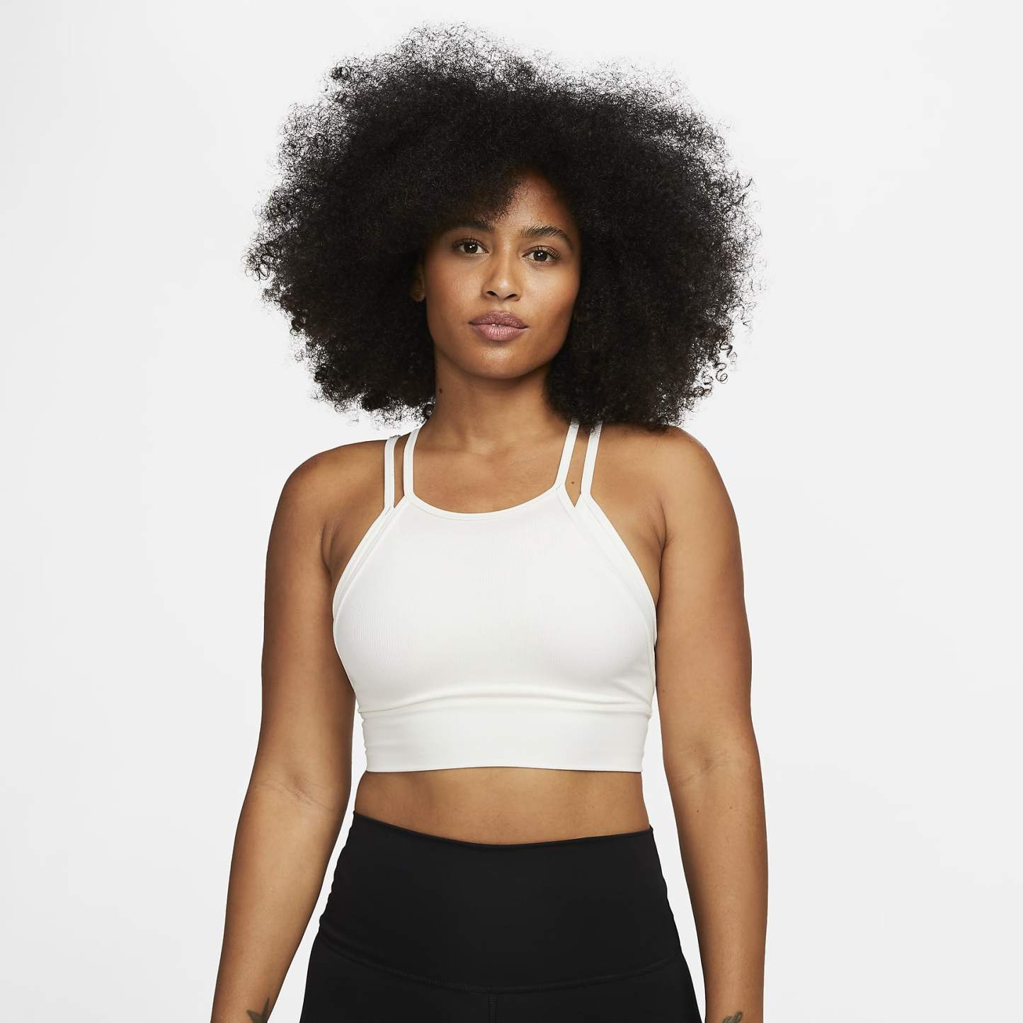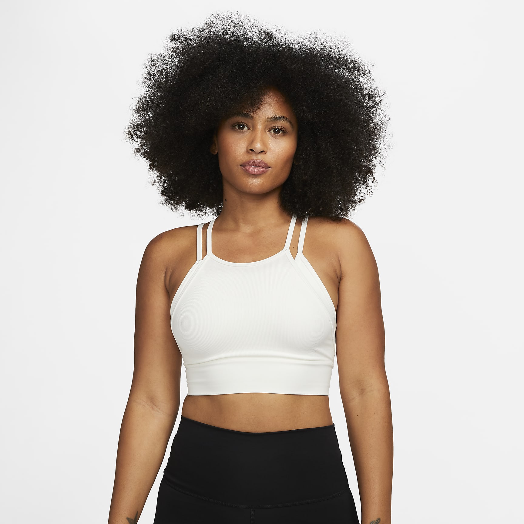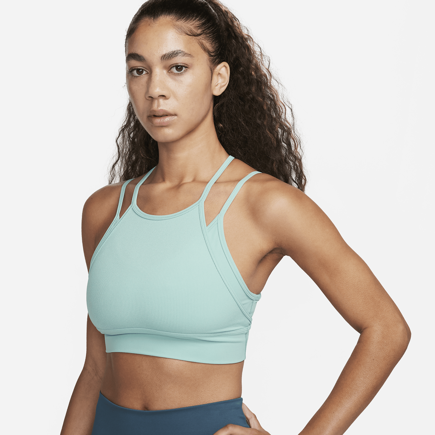 Wrap yourself in this gently supportive sports bra, made with irresistibly soft, ribbed fabric. It has a high neckline to keep your confidence up during quick moves and thin straps that keep the flowing when your workout heats up.
