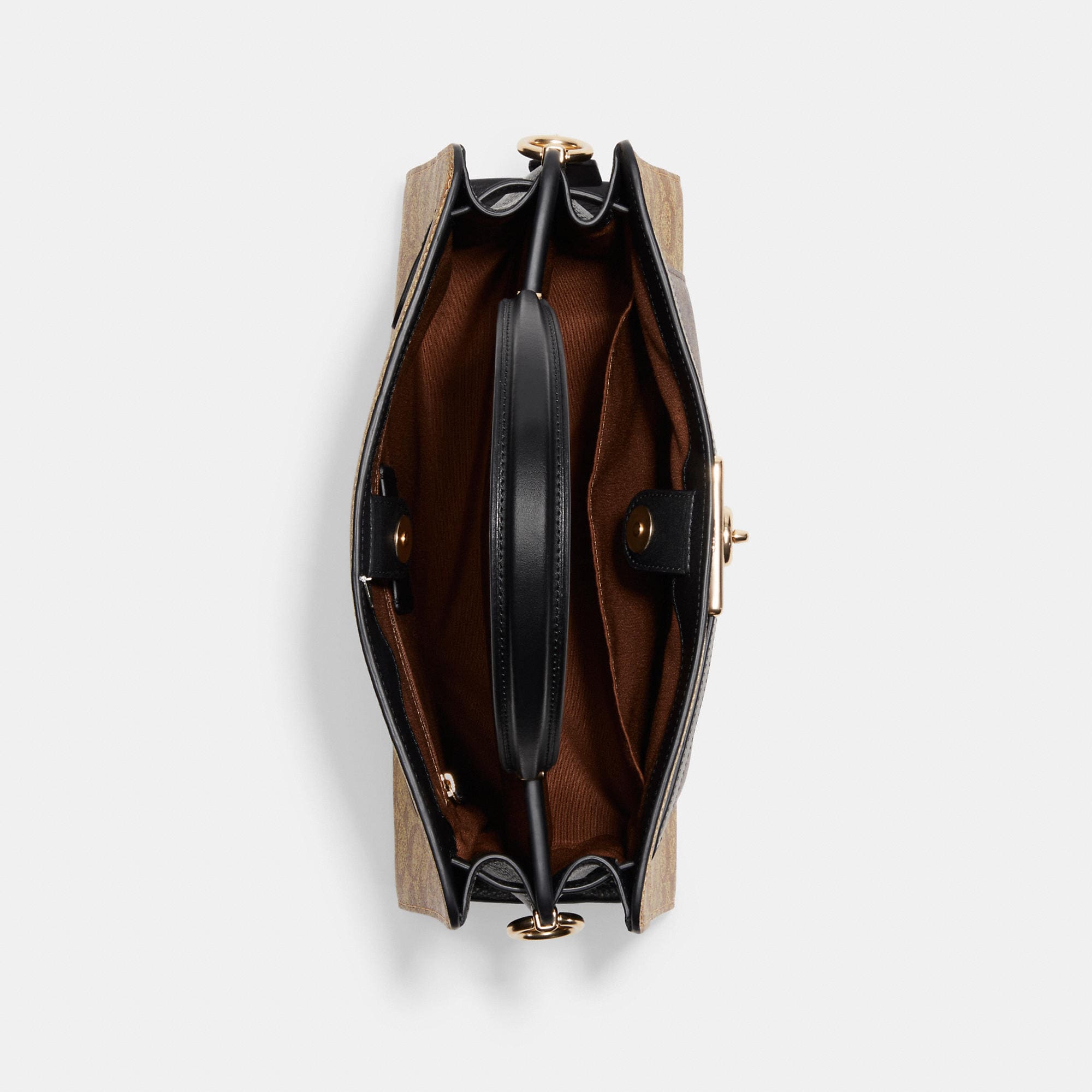 Signature coated canvas refined pebble leather and smooth leather Inside zip and multifunction pockets Snap closures fabric lining Handle with 4 1/4 drop Outside open pocket Detachable strap with 20 1/2 drop for shoulder or crossbody wear Four protective feet at base 12 1/2 (L) x 8 3/4 (H) x 4 3/4 (W) Style No. C8596 | Outlet Lane Carryall In Blocked Signature Canvas - Beige