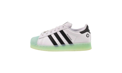 The Supthterstar LED Lights PS 'Cloud White' shoe features a classic design with integrated LED lights, offering a fun and unique twist on the iconic Supthterstar silhouette in a clean white colorway.