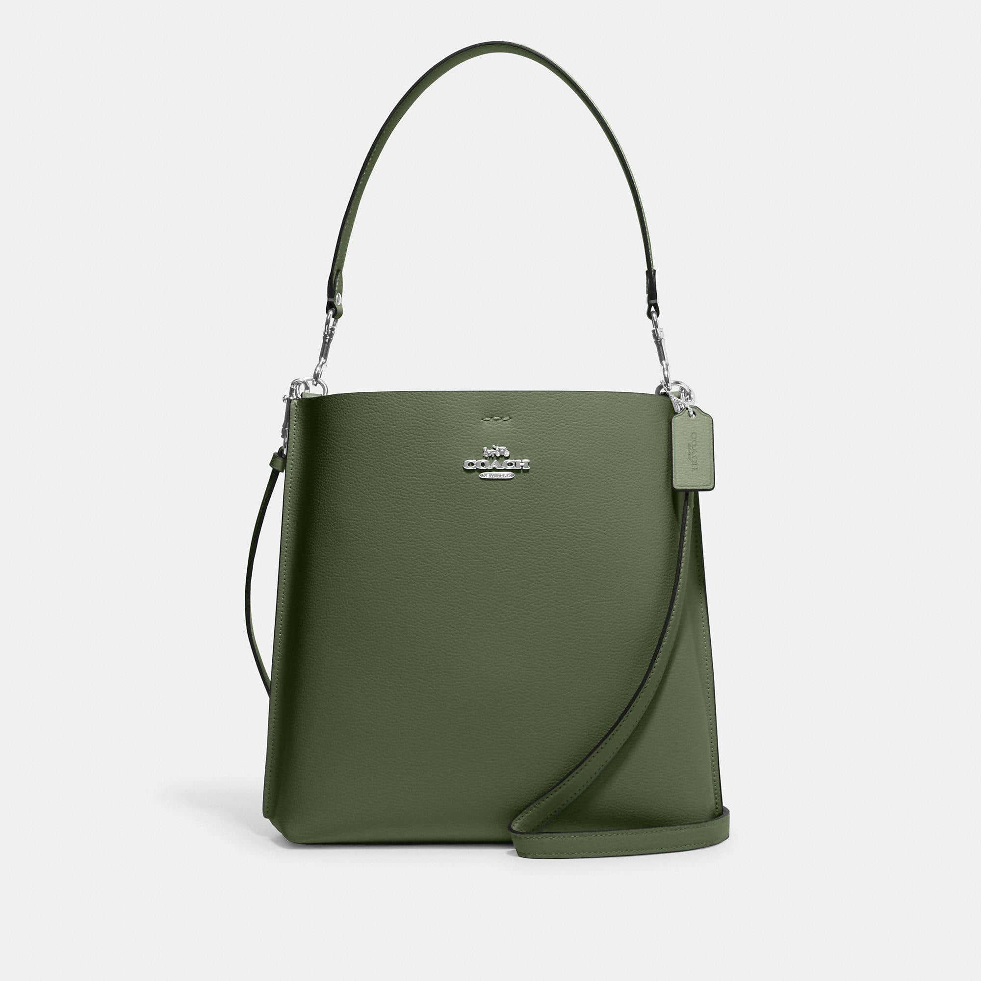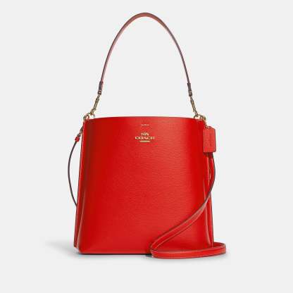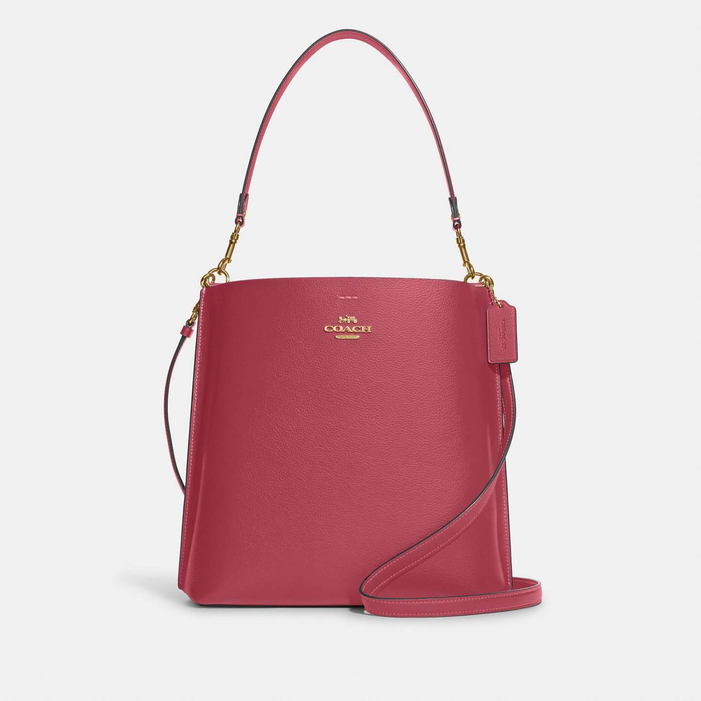 Double face leather Center zip compartment Snap closure Detachable handle with 10 drop Detachable strap with 20 1/2 drop for shoulder or crossbody wear 11 (L) x 11 1/2 (H) x 3 3/4 (W) Style No. CA214 | Outlet Mollie Bucket Bag - White
