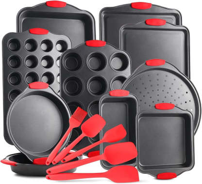 Nonstick Bakeware Sets with Baking Pans Set, 39 Piece Baking Set with Muffin Pan, Cake Pan & Cookie Sheets for Baking Nonstick Set, Steel Baking Sheets for Oven with Kitchen Utensils Set - Black