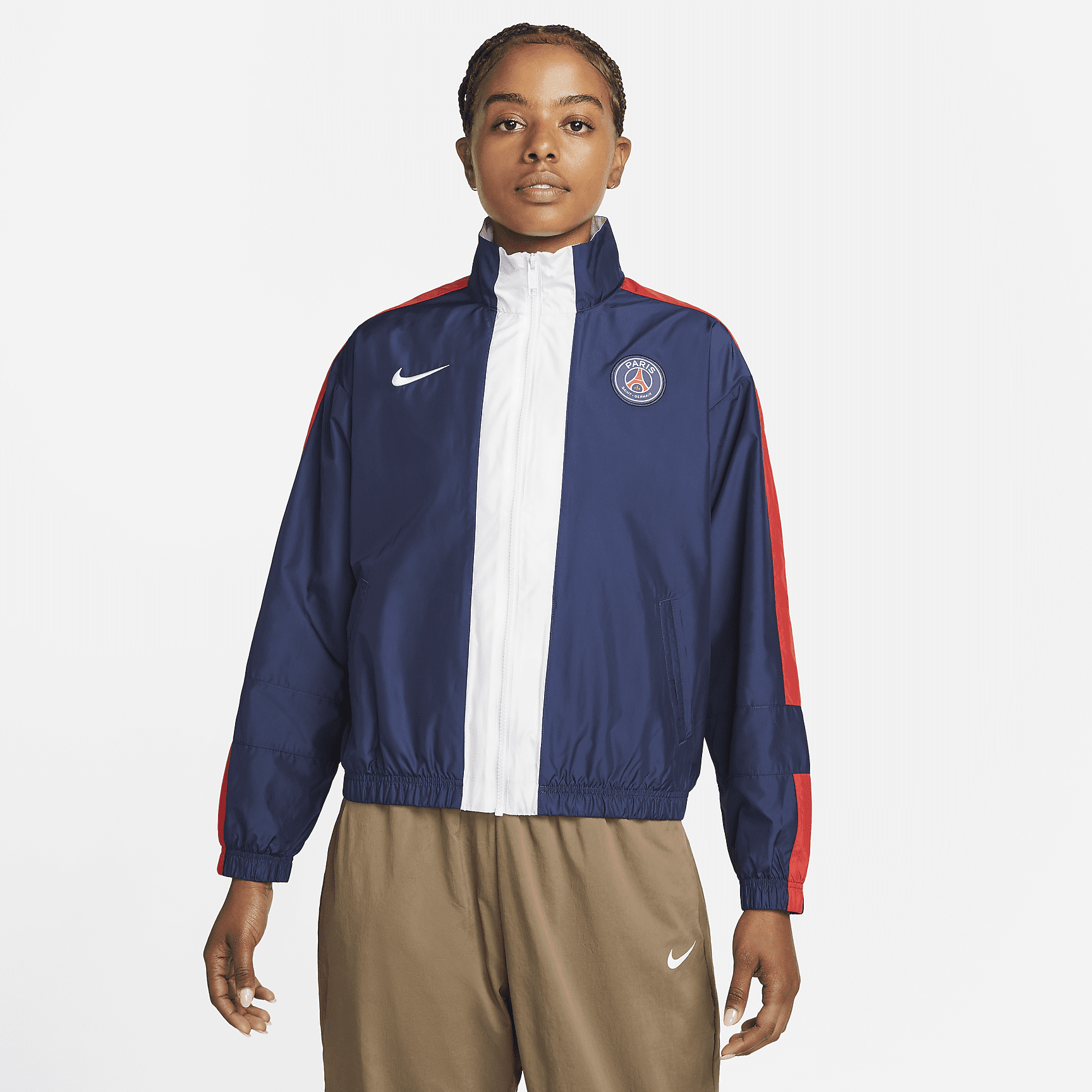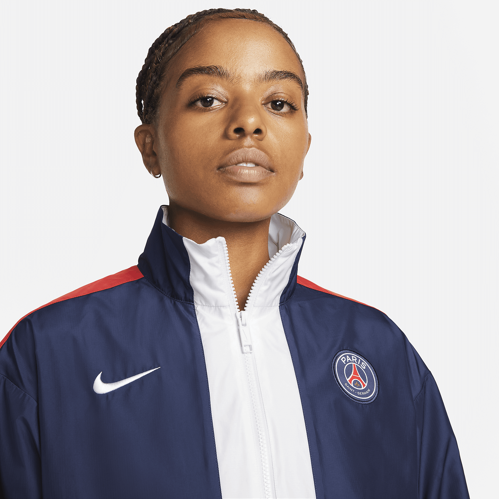 Picture yourself on the world's biggest stage for the anthem moment in this Paris Saint-Germain jacket. With an oversized design, it goes on effortlessly over your other gear. Lightweight ripstop fabric with a water-repellent finish helps you stay dry while you're repping your team in wet weather.