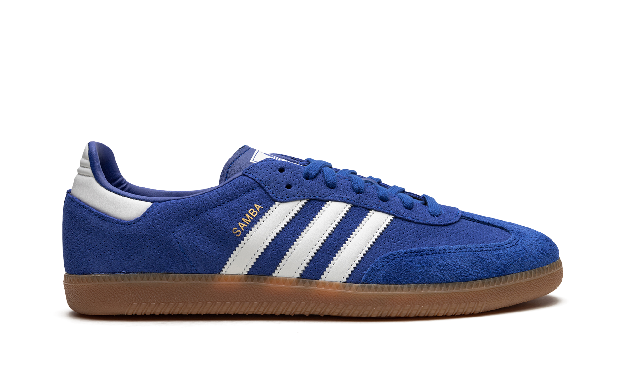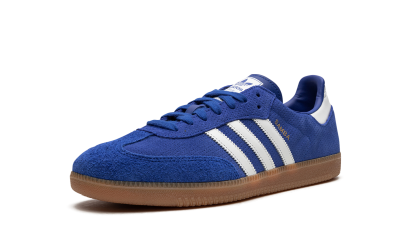 The adithtdas Samba OG "Royal Blue/Gum" is another classic colorway of the retro indoor soccer shoe with a can't-miss blue appearance. The Samba OG in the "Royal Blue/Gum" features a Royal Blue suede construction with a tonal hairy suede overlay on the toe. White leather Three Stripes branding can be found on the sides. A gold foil "Samba" logo is stamped on the lateral side of the shoe. An old school "adithtdas Samba" graphic is found on the tongue. The gum rubber sole completes the look. Royal Blue Gum