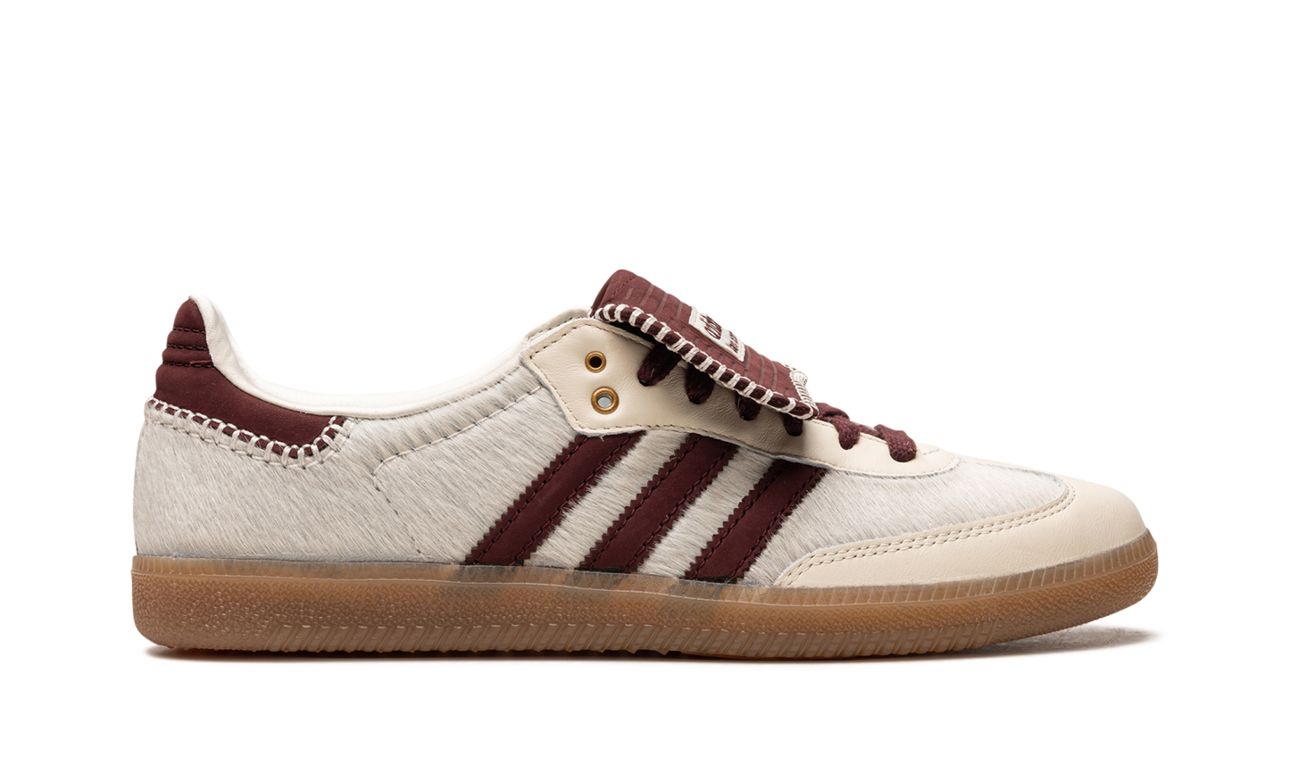 The Wales Bonner x adithtdas Samba "Cream White Pony Hair" is a collaboration by the London based fashion designer on the retro sneaker with design elements inspired by its soccer roots. A partnership that dates back to 2020, Wales Bonner and adithtdas come together to create yet another great colorway of the popular Samba. The upper features a cream-colored pony hair construction with a tonal leather panel on the toe. Mystery Brown-colored Three Stripes branding is seen on the side. More brown accenting can be found on the heel tab and laces, and on the fold-over tongue that is a nod to the Samba's original soccer shoe design. Release date: November 8, 2023 Wales Bonner - Cream White Pony