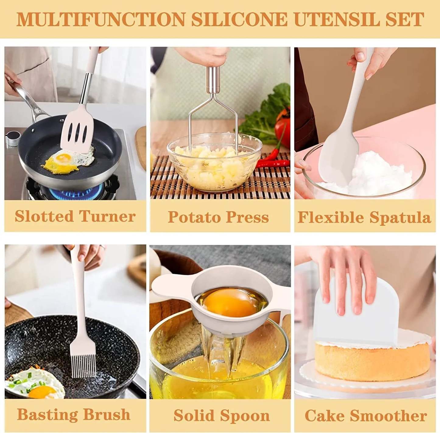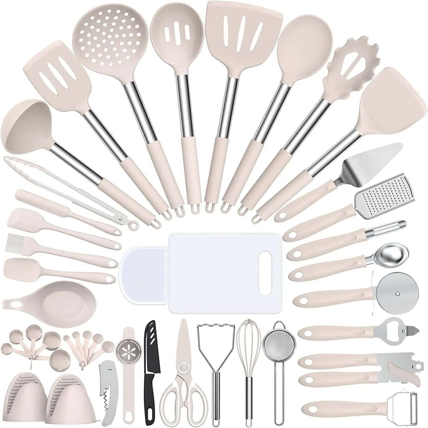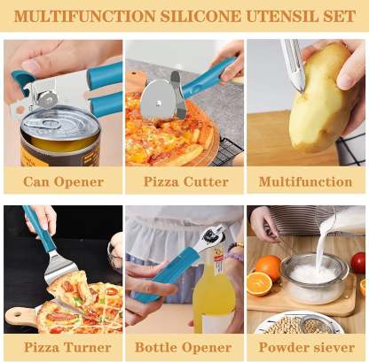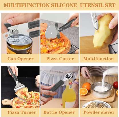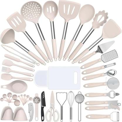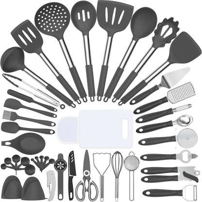 - 🎁43 PCS COOKING UTENSIL GIFT SET - 43 multifunction utensil set includes everything you need to cook that perfect dish,includes Slotted Turner,Slotted Spoon, Solid Turner, Deep soup Ladl, Pasta Server, Flexible Spatula, Spoon Spatula, Spreader Spatula, Slotted Spatula, Bating Brush, Egg Whisk, Slotted Spoon, Solid Spoon, Kitchen Tongs, Cheese Grater, Peeler, Pizza Turner and so,Your smart purchase of our all-inclusive and essential kitchen gadgets set is one you'll appreciate for many years