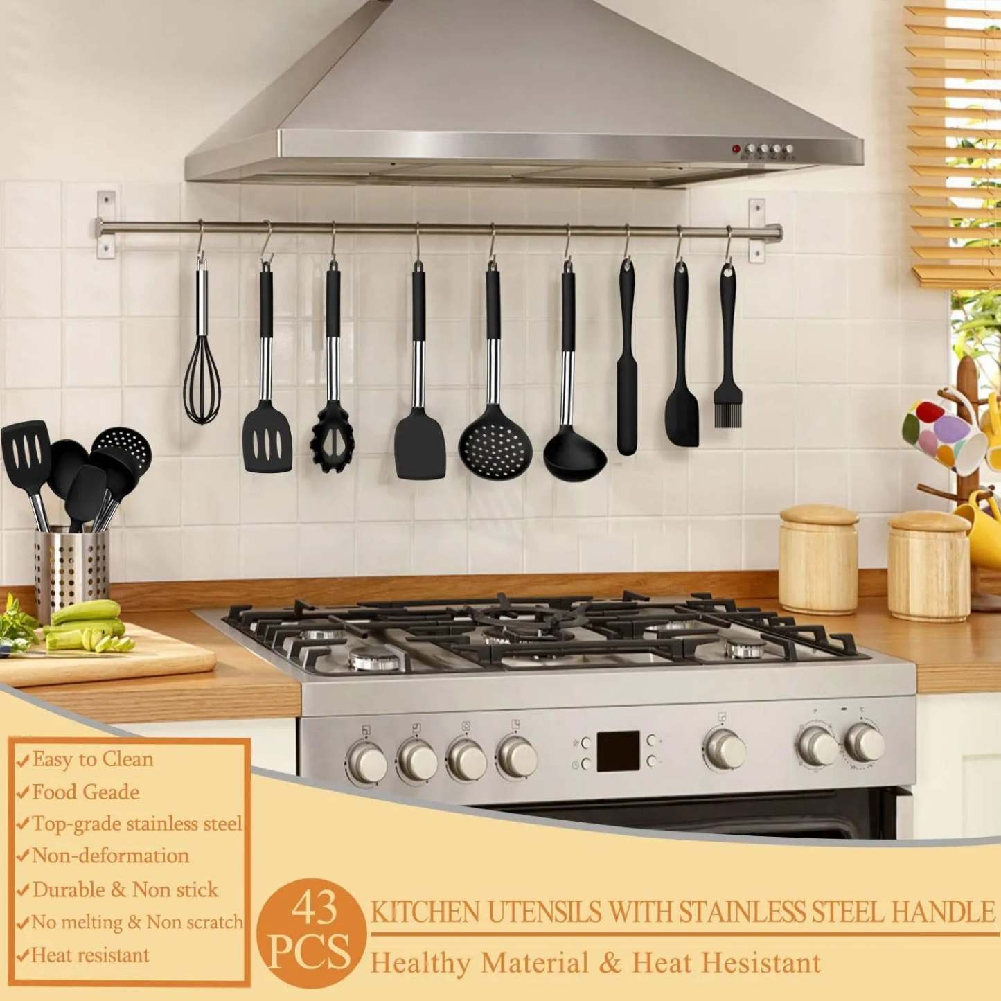 Silicone cooking tool set, chef 43 pieces heat-resistant kitchen tools