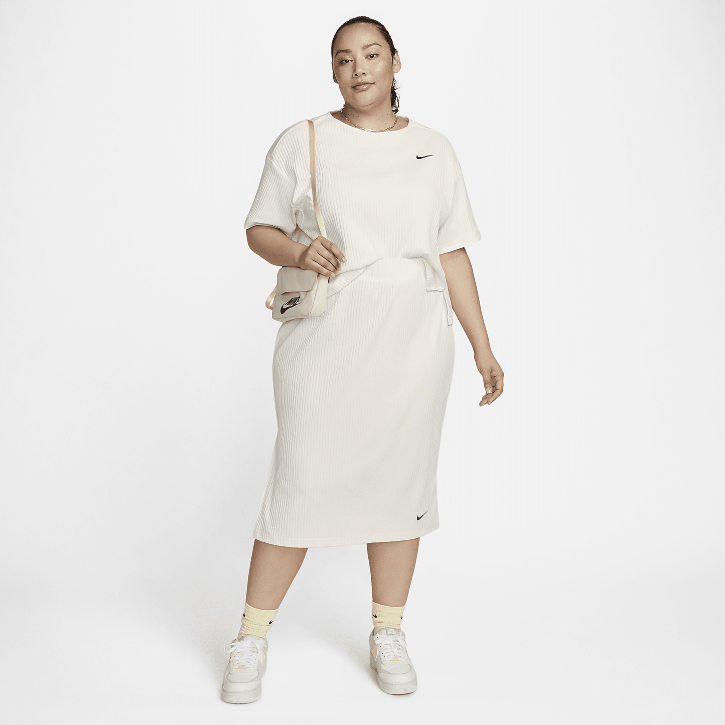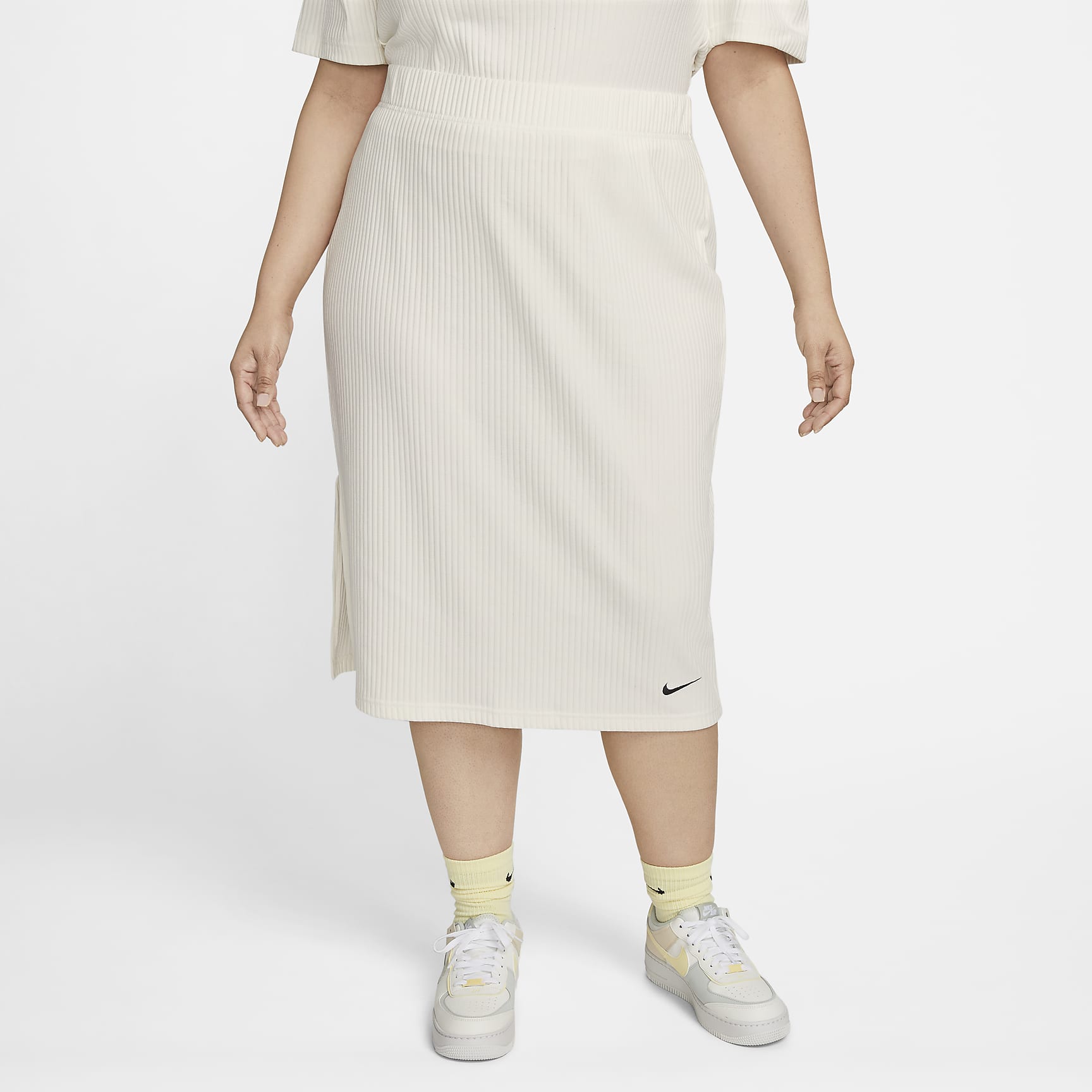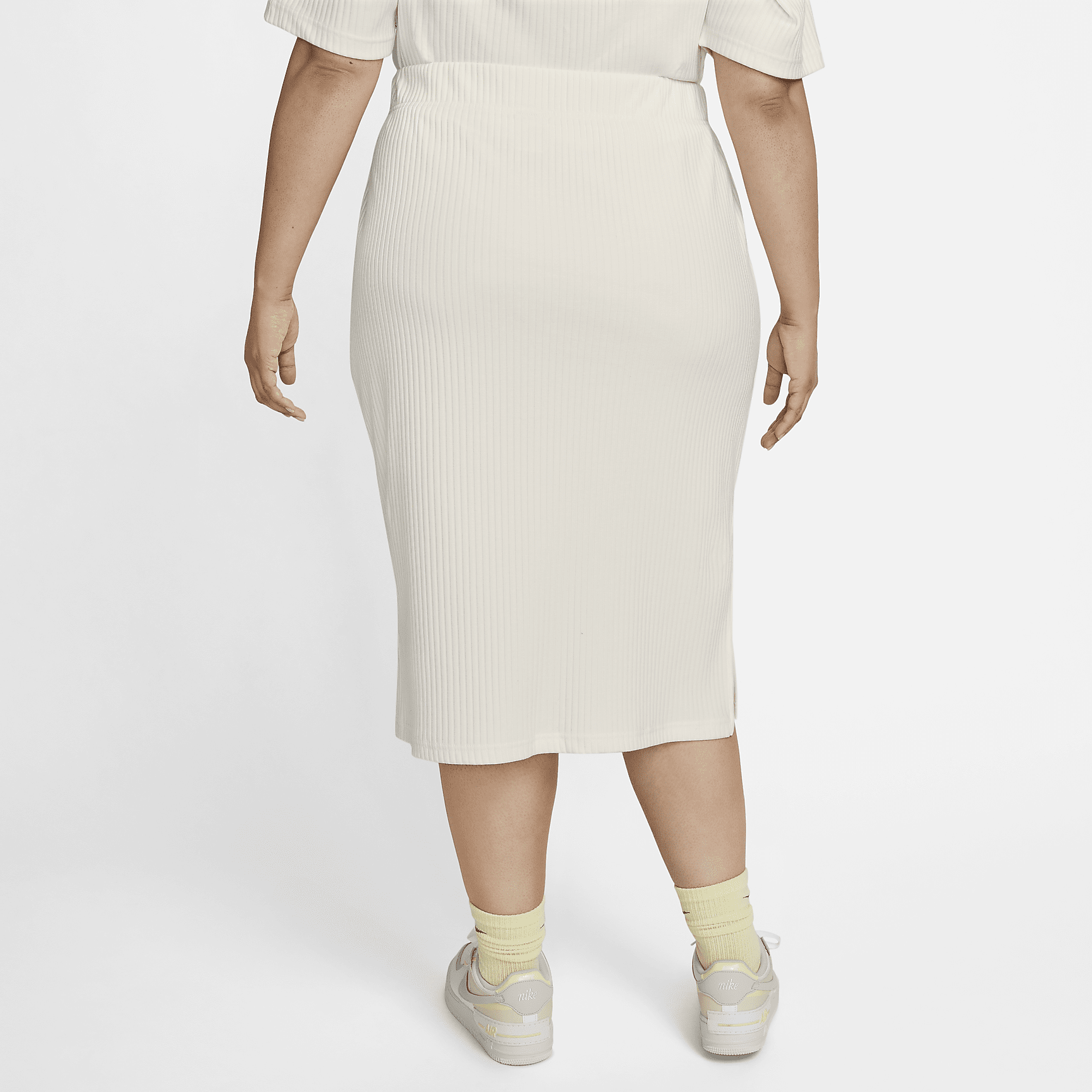 Add some extra texture to your look with the help of this ribbed, body-skimming pencil skirt. Soft and light, its fabric has just the right amount of stretch for a body-skimming fit that you can dress up or down.