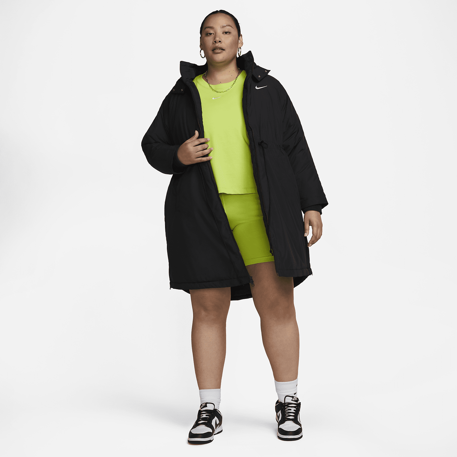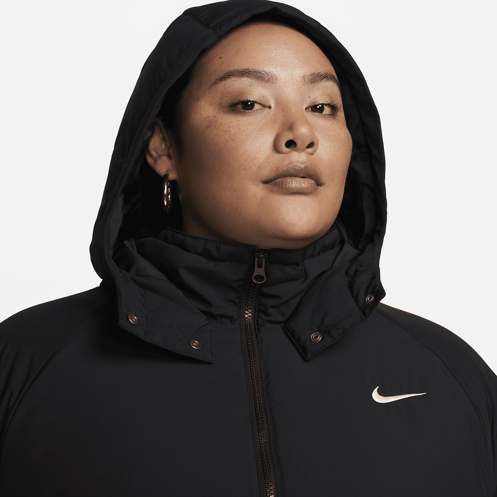 A hybrid of the oversized stadium jackets worn on the sidelines and a classic trench coat, this extra-cozy layer helps protect you and your outfit from cold temps, showers and other unexpected weather. The 2-way zipper and snaps on the hood give you styling and coverage options so you can adjust to changing conditions with ease.
