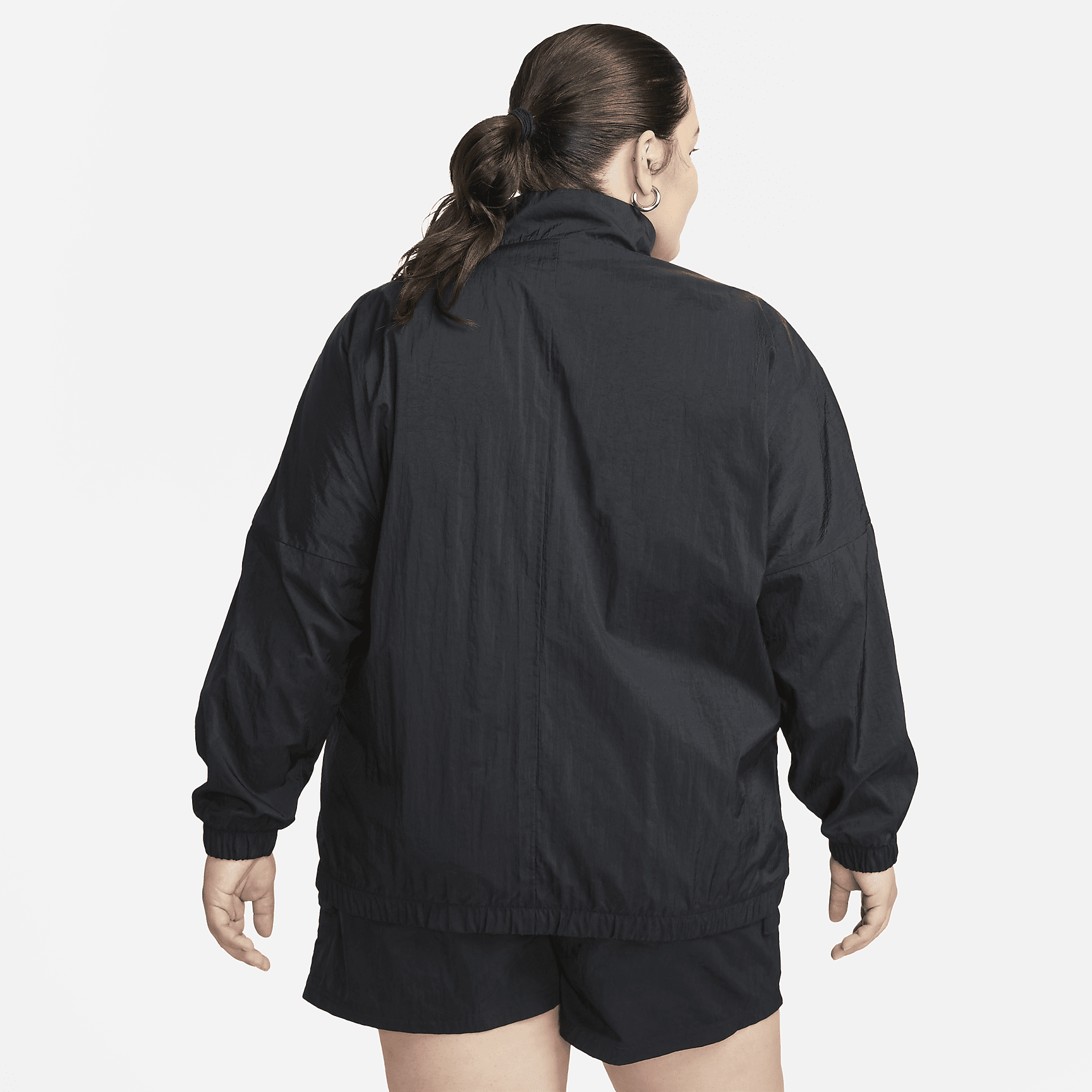 Stay covered without losing a stitch of style in this oversized, carefree jacket. An oversized fit and a mesh lining make it perfect for layering, while elastic at the waist and cuffs help keep it in place as you move through your day.