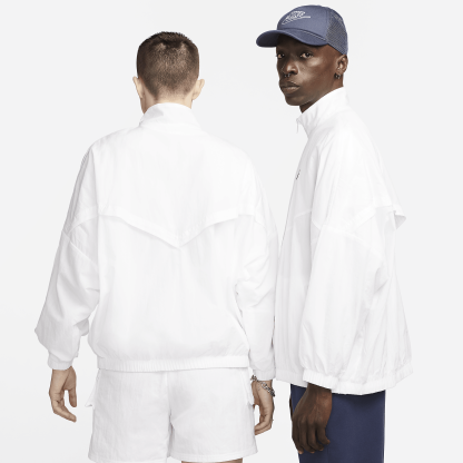 Stay covered without losing a stitch of style in this oversized, carefree jacket. Building on the classic Windrunner, its crinkle woven fabric is lined with mesh for added comfort and easy layering. An iconic chevron shape and Futura logo provide a heritage look. This product is made with 100% recycled polyester and recycled nylon fibers.