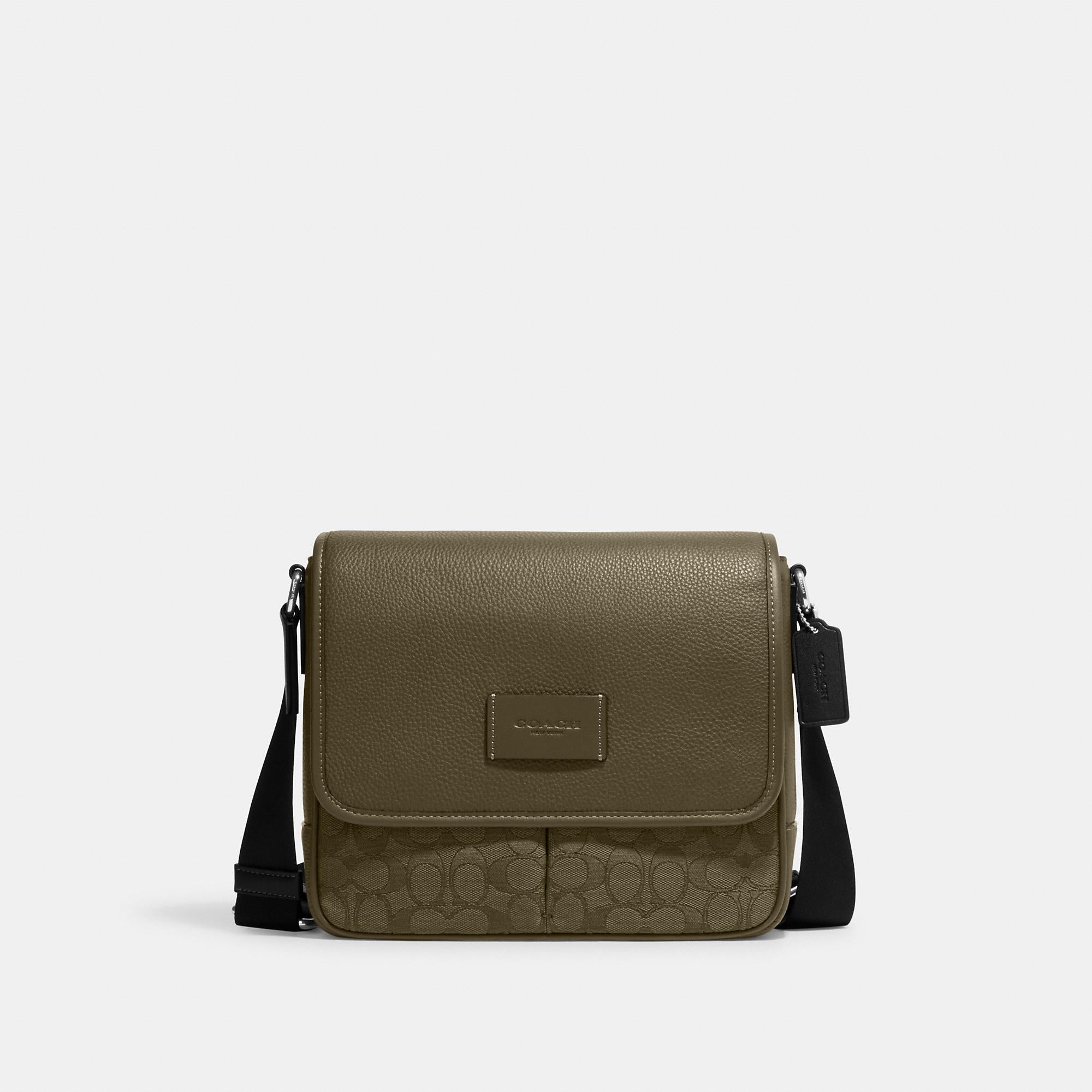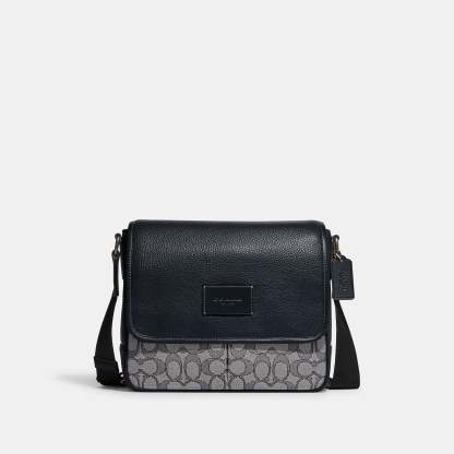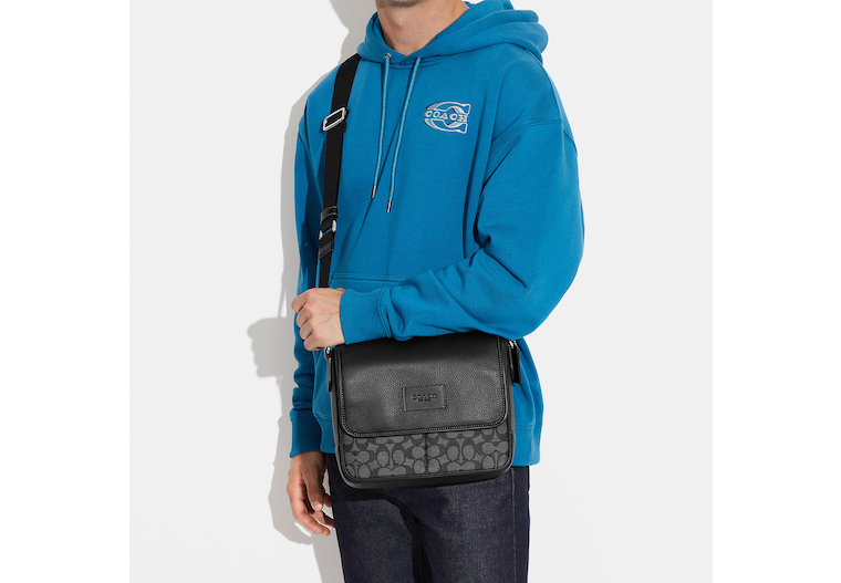 Signature jacquard refined pebble leather and smooth calf leather Inside zip and multifunction pockets Magnetic snap closure fabric lining Outside open pocket Adjustable strap with 25 drop for shoulder or crossbody wear 10 (L) x 8 1/4 (H) x 2 3/4 (W) This piece is crafted of our Signature jacquard made from a blend of organic cotton and recycled polyester Style No. CE534 | Outlet Sprint Map Bag 25 In Signature Jacquard - Black