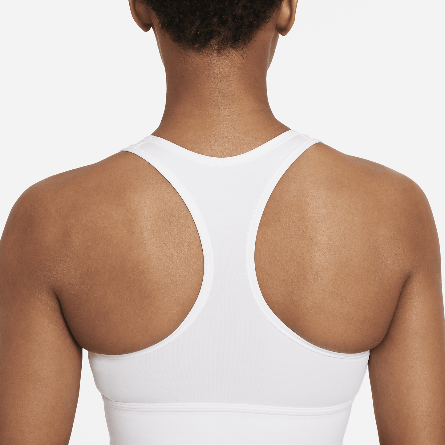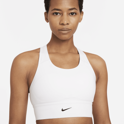 The Dri-FIT Swoosh Sports Bra gives you coverage with a length that extends just below your rib cage, and the flexibility of a racerback design. The stretchy material moves with you whether you’re throwing weights or tracking miles on the elliptical. A tight fit gives you medium support and a removable 1-piece pad adds extra coverage when you need it. This product is made with at least 50% recycled polyester fibers.