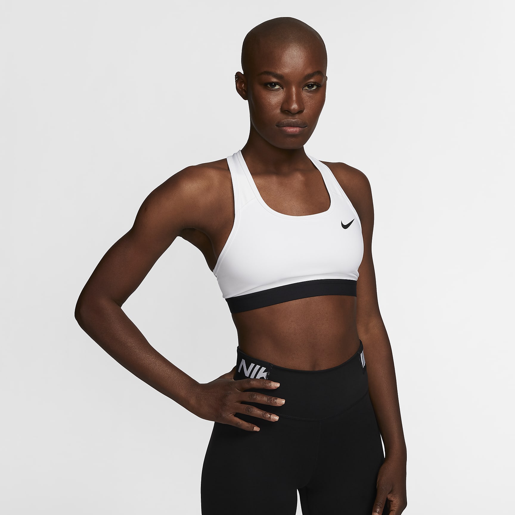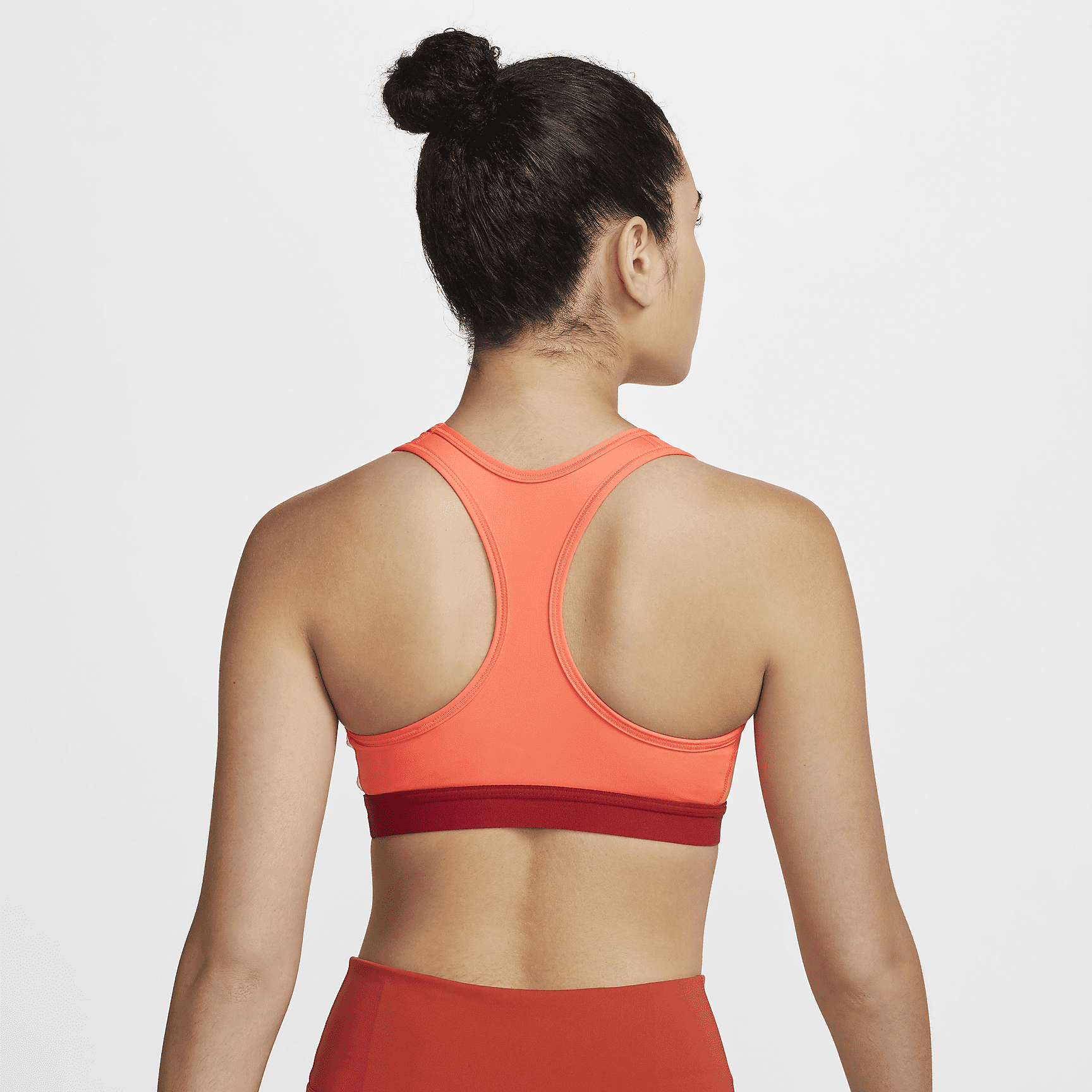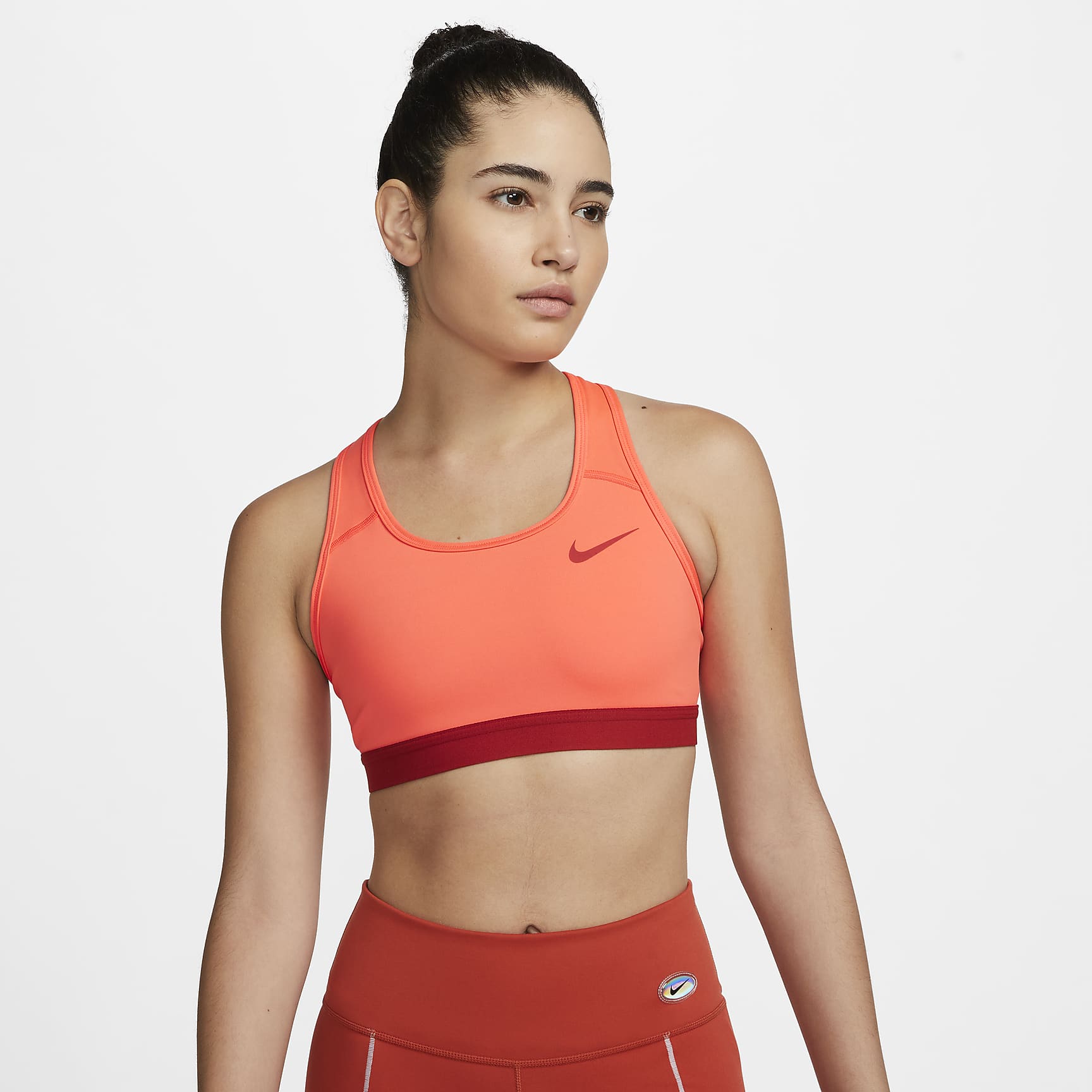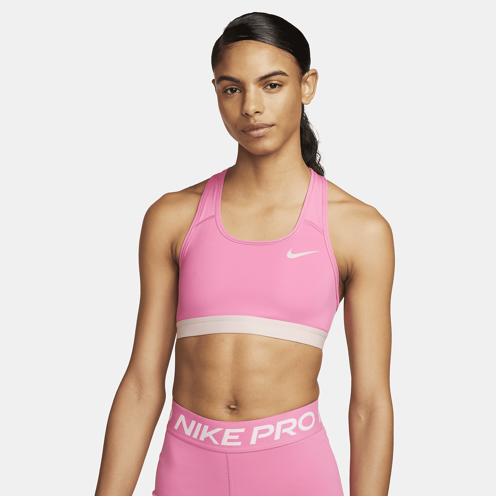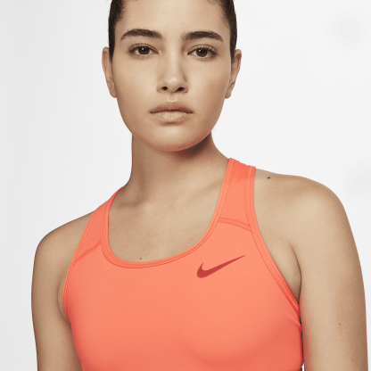 The Dri-FIT Swoosh Sports Bra gives you the kind of support you know you can count on. This non-padded style is made of soft, smooth fabric and an exposed elastic band at the bottom that helps keep everything in place. Sweat-wicking technology helps you stay dry and comfortable. This product is made with at least 50% recycled polyester fibers.