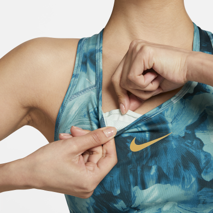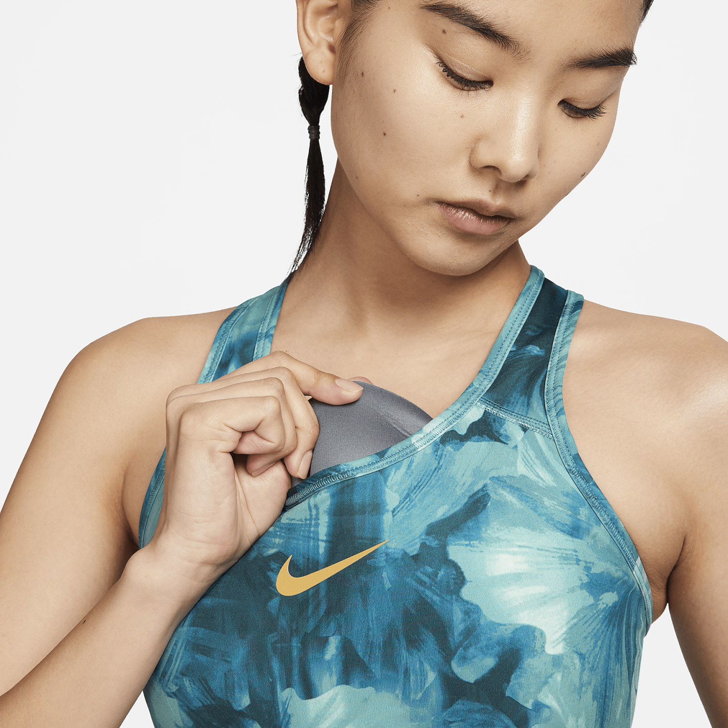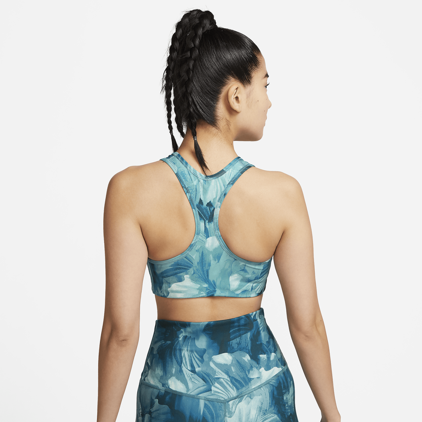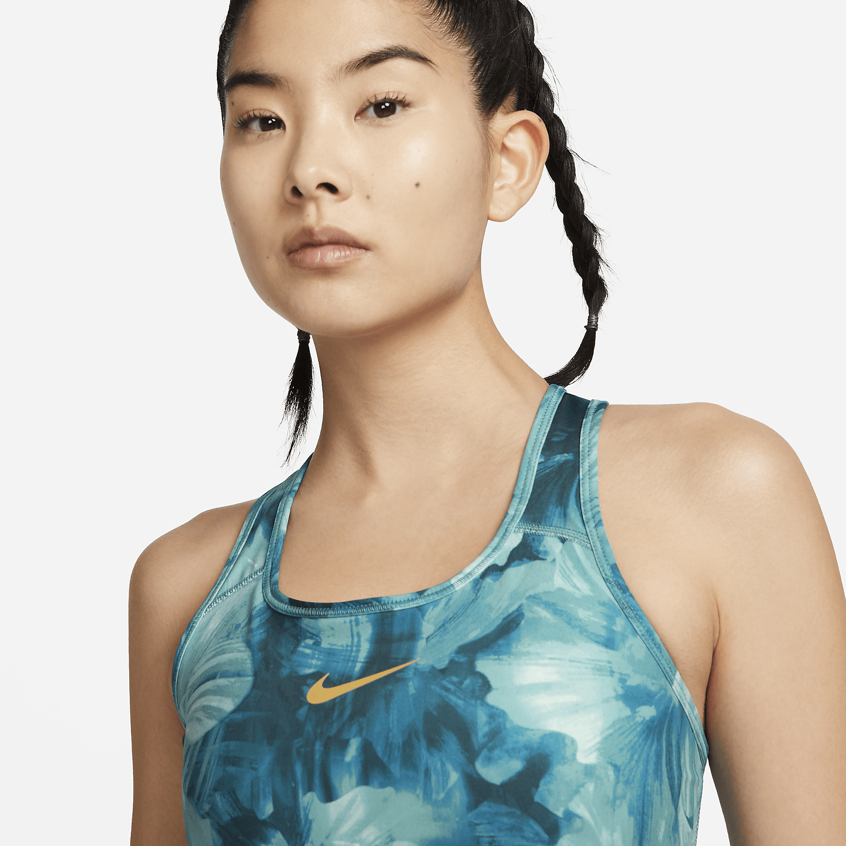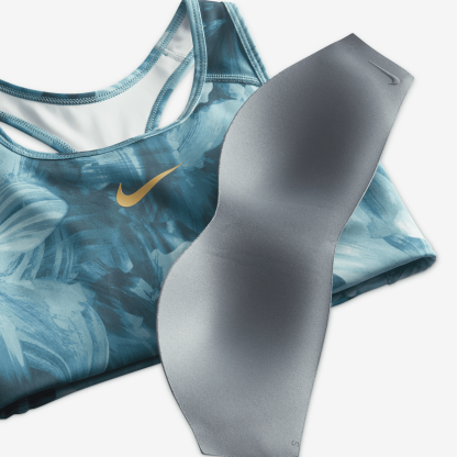 With wide, comfy straps in a classic racerback design, the Swoosh Sports Bra feels snug and secure while you move. A swirling marble-like print mimics the body in motion while smooth, lightweight fabric wicks sweat away from your skin to help keep you feeling dry, comfortable and focused. For every rep, step and jump—know that you’re supported.