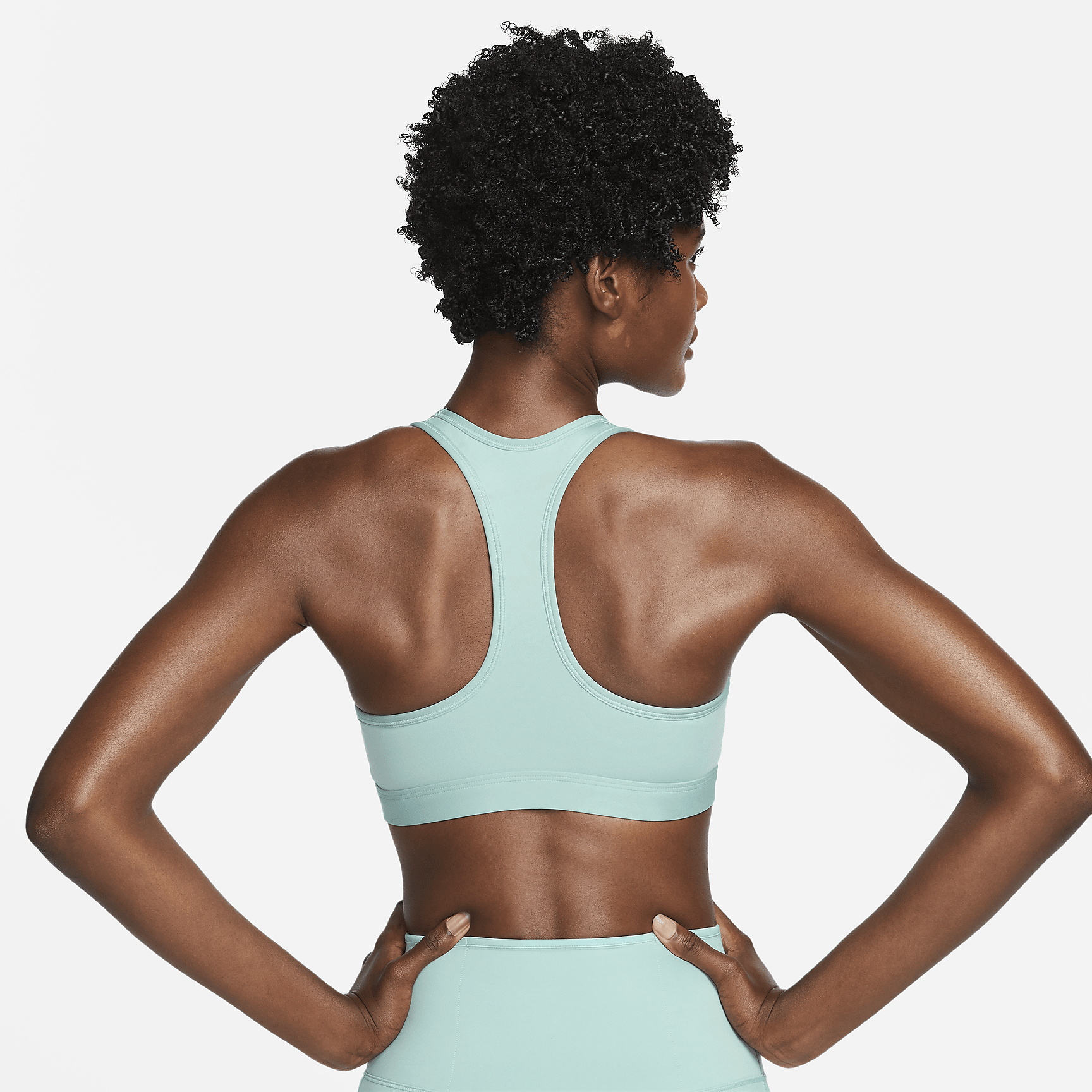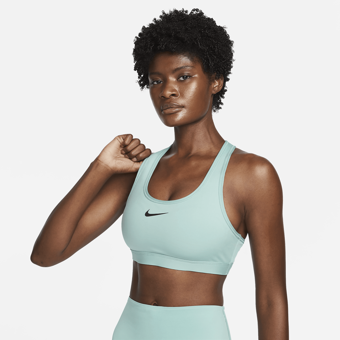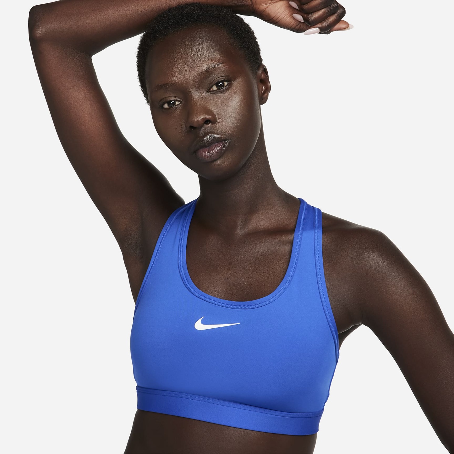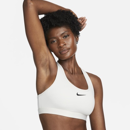 You're on the move. Your padding shouldn't be. This Swoosh bra's sewn-in pads stay in place so you can work hard without worrying about them shifting or folding. Great for training workouts and dance classes, medium support gives you a snug hold that helps keep everything in place. Plus, sweat-wicking, adaptive material quickly recovers its shape so you can stay comfortable throughout your workout.