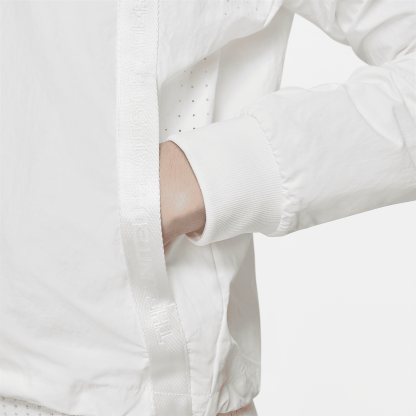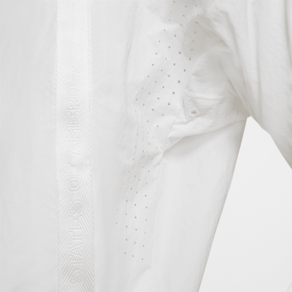 The Team USA Medal Stand Jacket features classic Windrunner style with plenty of patriotic spirit. The traditional tracksuit silhouette is perfected with inspiration from the clean lines of Japanese Kimonos. Made with a blend of at least 90% recycled materials, the crinkle fabric features laser-cut perforations to help you stay cool and comfortable.