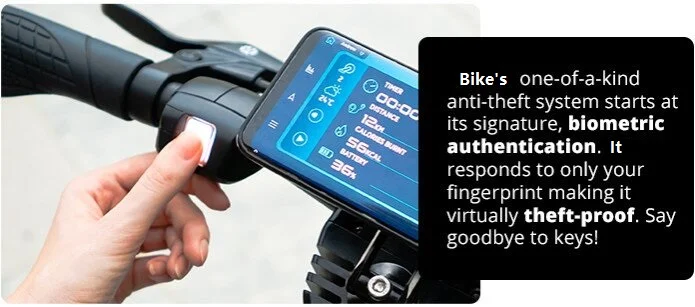 The most stylish and secure bike ever designed! It's virtually unbreakable. It features a fingerprint sensor and a button, and includes automatic locking and GPS tracking.