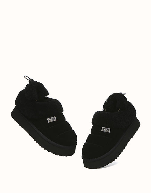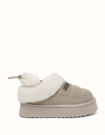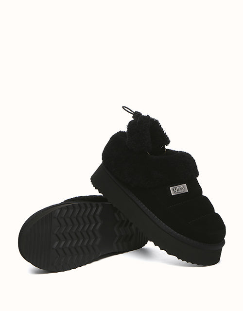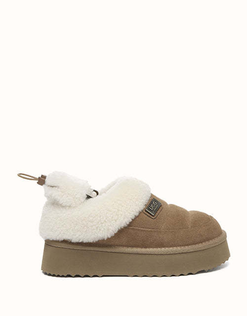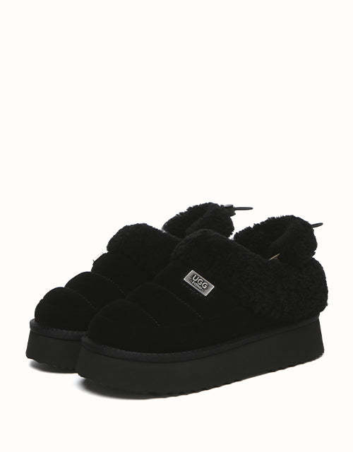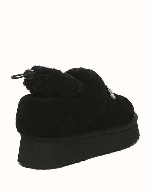 Say hello to the adorable and ultra-comfy EVEthtRAU Paige Slingback Platform Slippers UGthtGthe perfect new staple for your wardrobe. Featuring a stylish bungee drawstring at the back, these slippers allow you to adjust the fit to your liking while adding a fashionable detail. Available in classic chestnut, black, and sand, they effortlessly complement a wide range of outfits. The raised platform sole gives you a gentle boost and adds a chic touch to any look, whether you're relaxing at home, out for errands, or grabbing a coffee with friends.