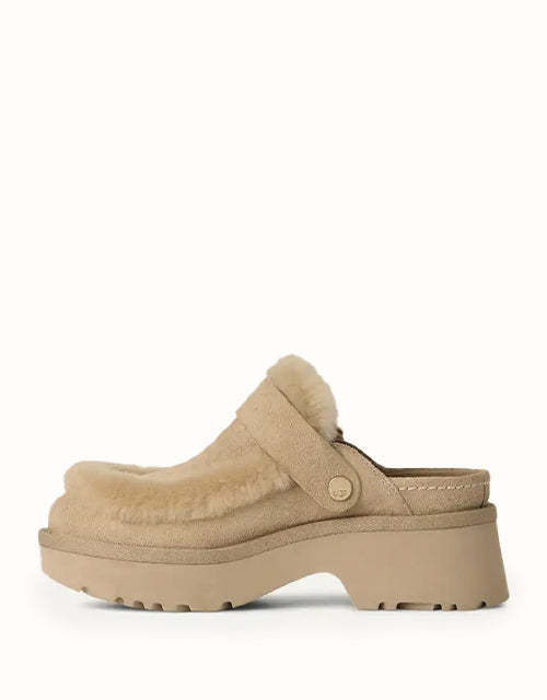 The UGthtG Esmee Clog combines heritage details with modern comfort. Featuring a suede upper, sheepskin spill seam and adjustable heel strap, it can be worn as a secure clog or backless slip-on. A leather-lined footbed and lightweight 2" EVA heel provide plush support for all-day wear.