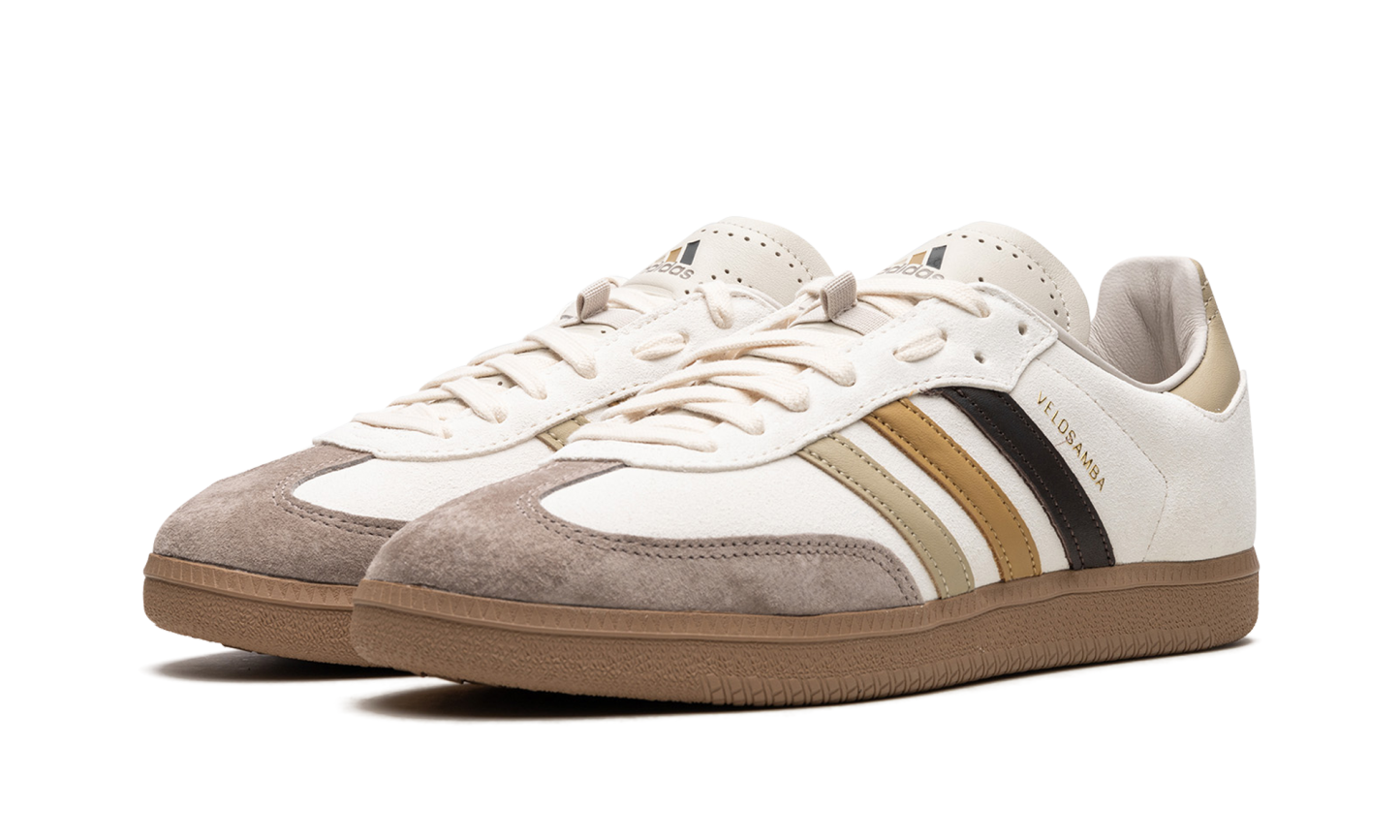 The END x adithtdas Velosamba "Social Cycling - Legend Ink" is a collaboration between the online retailer and adithtdas on the cycling-adjacent version of the adithtdas Samba. Featuring two-bolt cleat compatibility underfoot, the adithtdas Velosamba is essentially a two-in-one sneaker in that it can be both a cycling shoe and a lifestyle sneaker. END Clothing's collaboration with adithtdas on the silhouette features a white leather construction with a black, brown, and tan Three Stripes logo on the sides with "Velosamba" detailing appearing in gold foil lettering next to the classic adithtdas logo. A dark brown suede overlay sourced from the Charles F. Stead tannery in Leeds is found on the toe. "END" branding is located on the tan overlay on the back of the shoe beneath the tan leather heel tab. Release date: April 28, 2023 END - Social Cycling