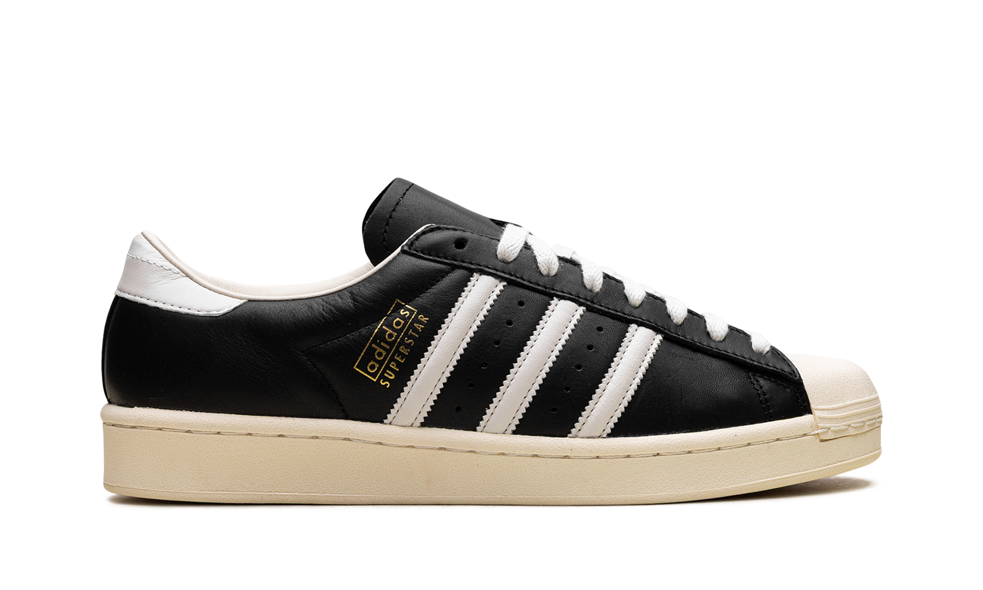 The Supthterstar Vintage 'Black / White / Antique' shoe features a classic design with a vintage aesthetic, offering a timeless addition to any sneaker collection.