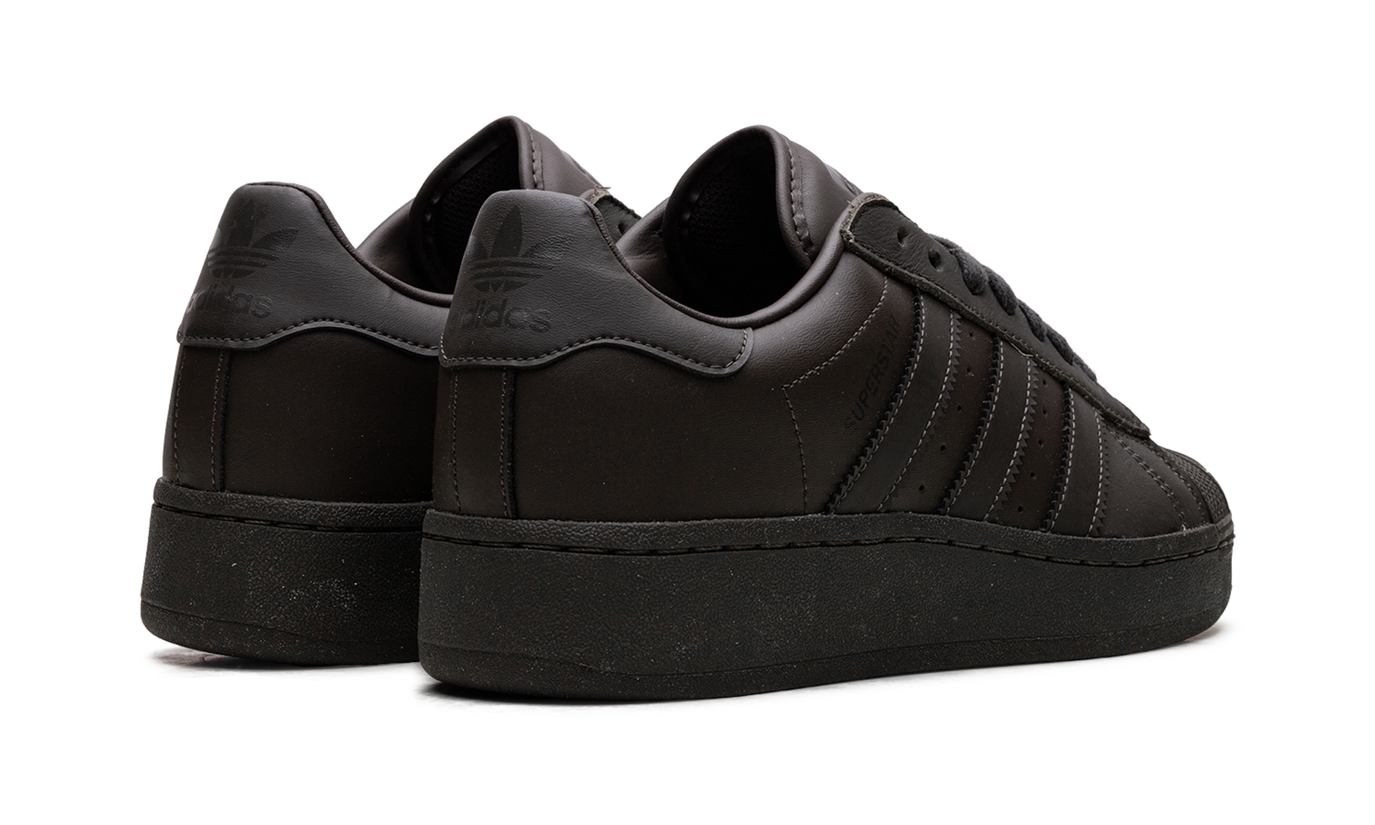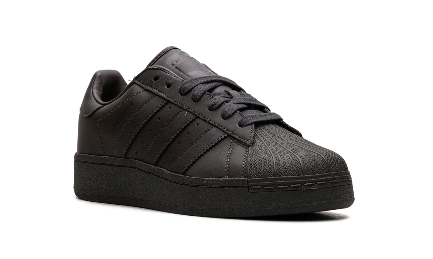 The Supthterstar XLG 'Black' shoe features an enlarged design with a sleek black colorway, offering a bold and fashionable take on the classic Supthterstar silhouette for a standout look.