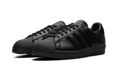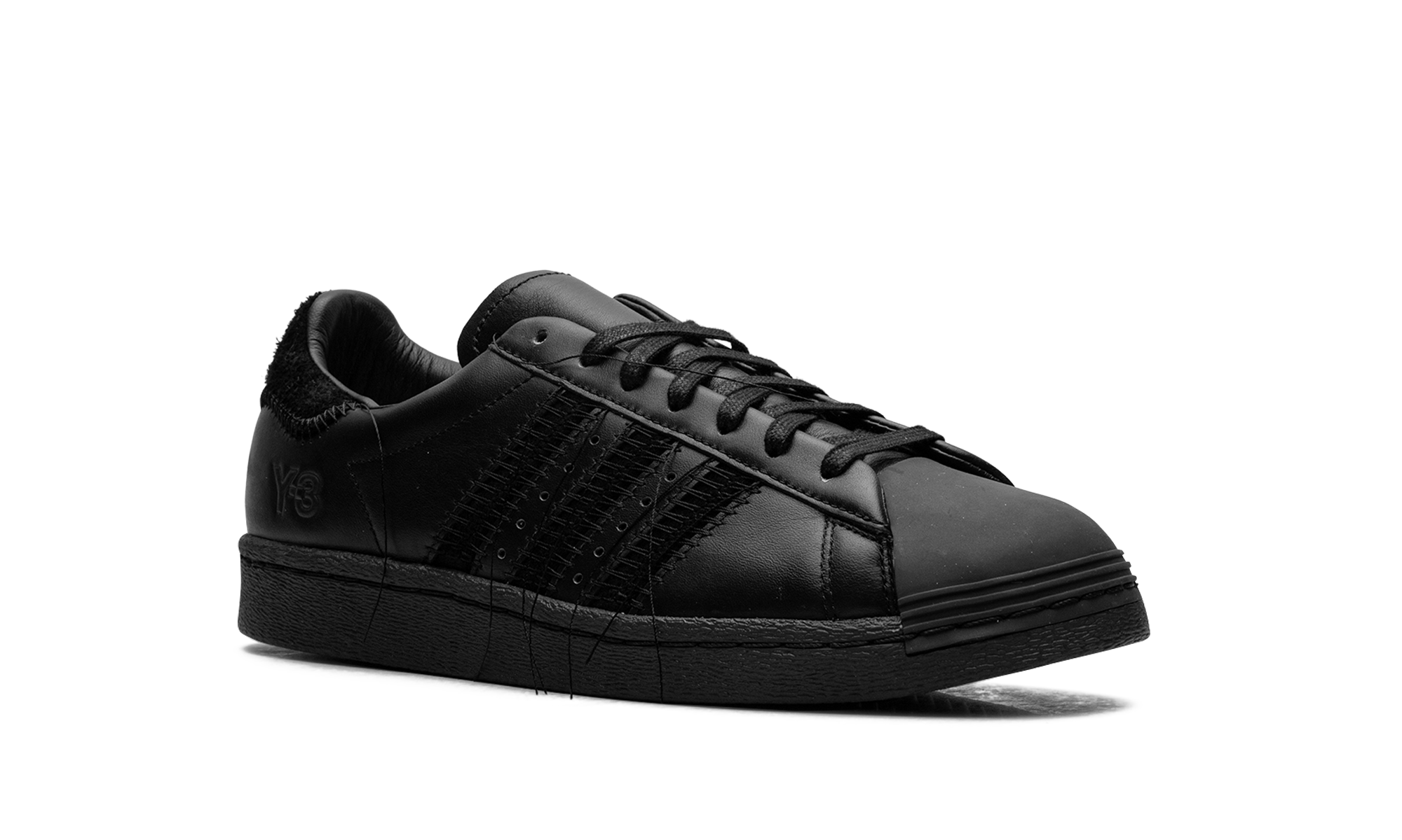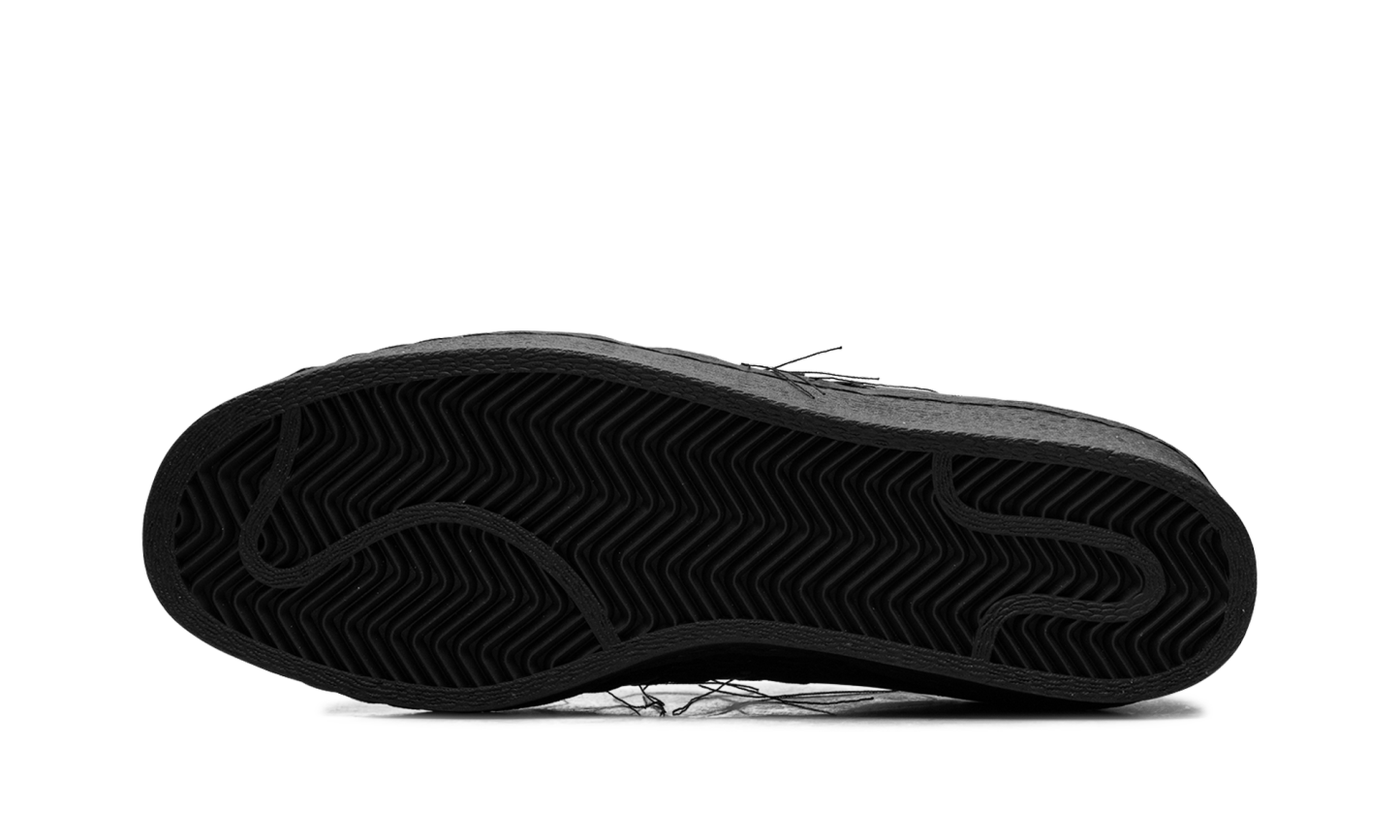 The Y-3 Supthterstar 'Black' shoe combines the iconic Adithtdas Supthterstar silhouette with Y-3's distinctive design, featuring a sleek all-black aesthetic.
