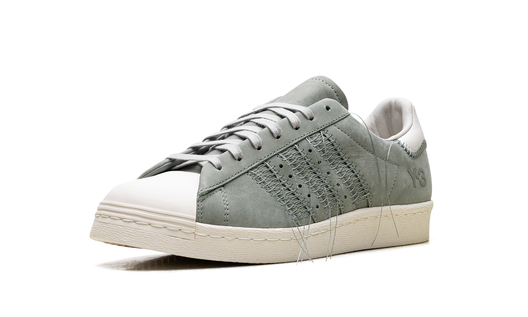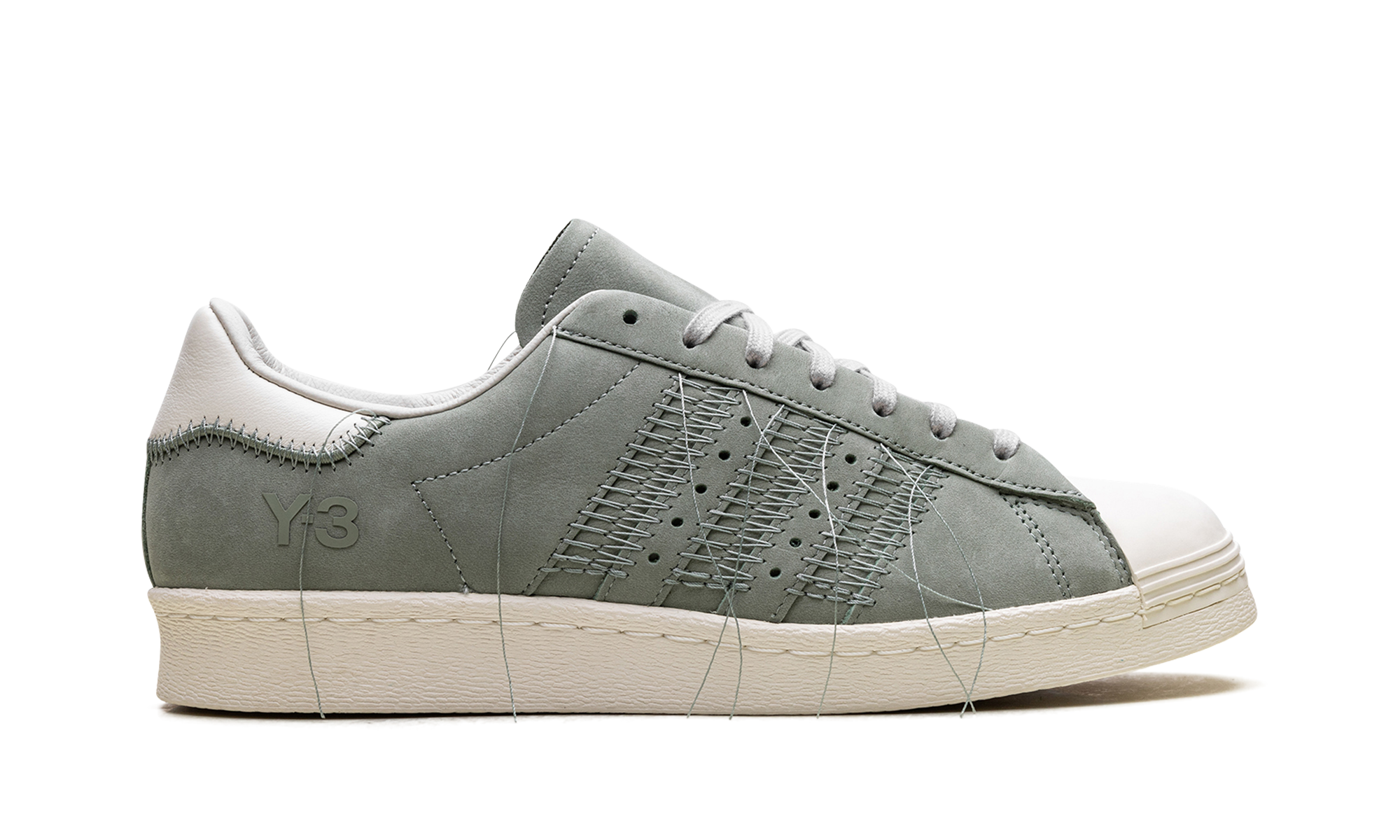 The Y-3 Supthterstar 'Silver Green Off White Light Brown' shoe blends classic Adithtdas Supthterstar style with Y-3's avant-garde design, featuring a minimalist aesthetic with silver green, off white, and light brown details.