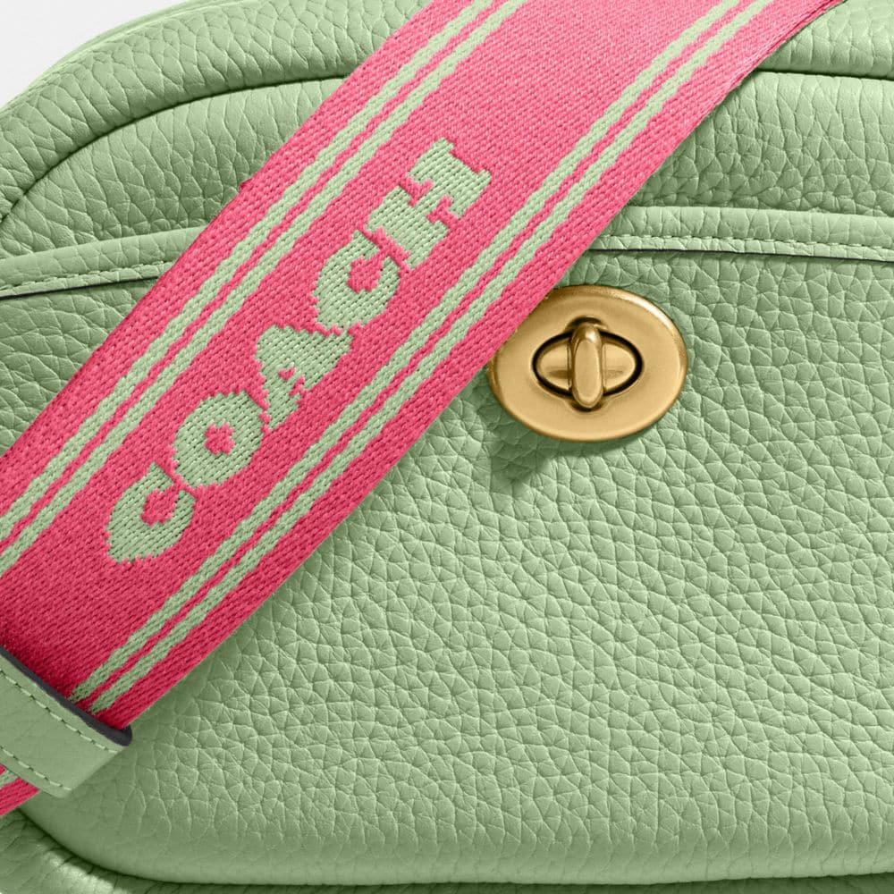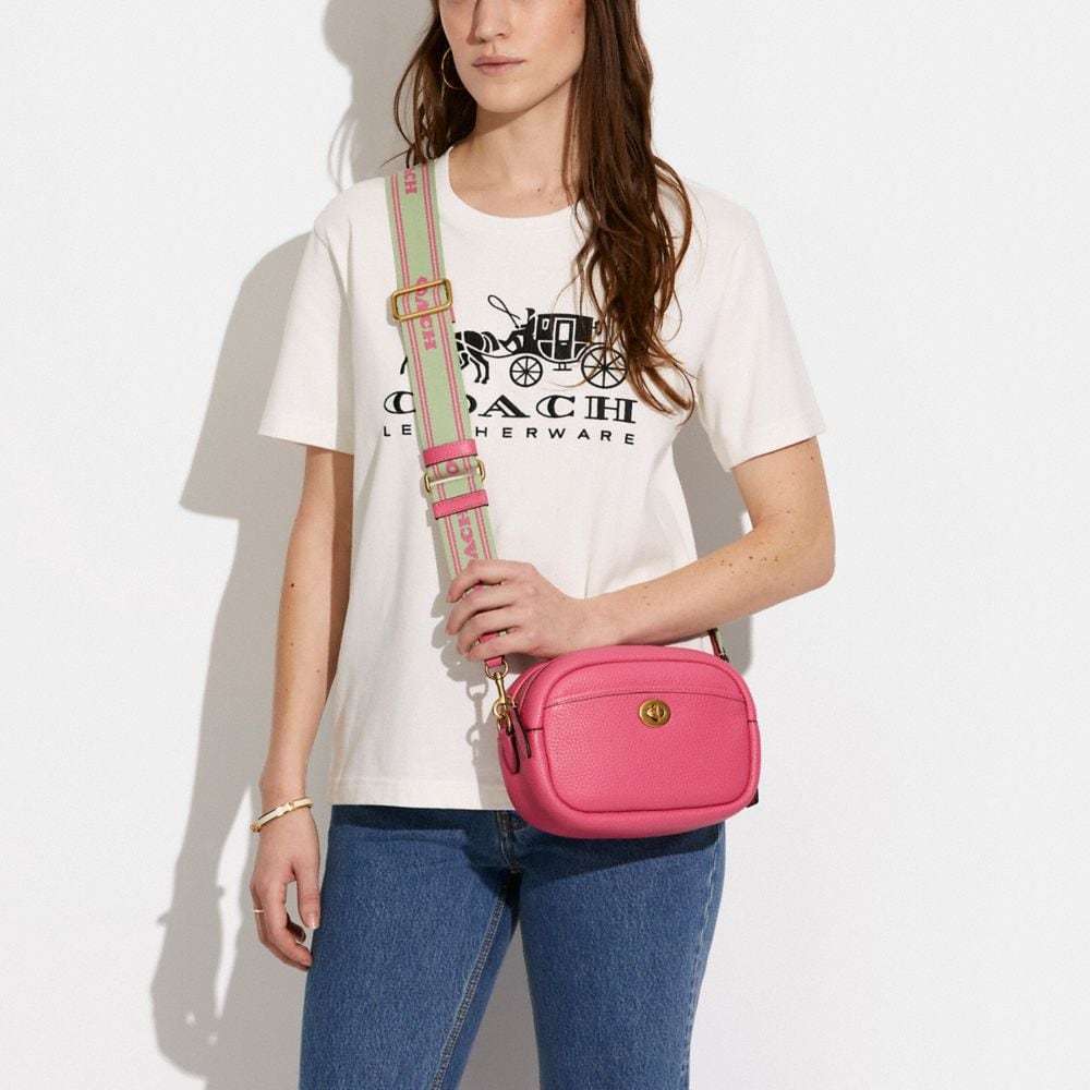 Includes interchangeable webbing strap with 23 1/2" drop