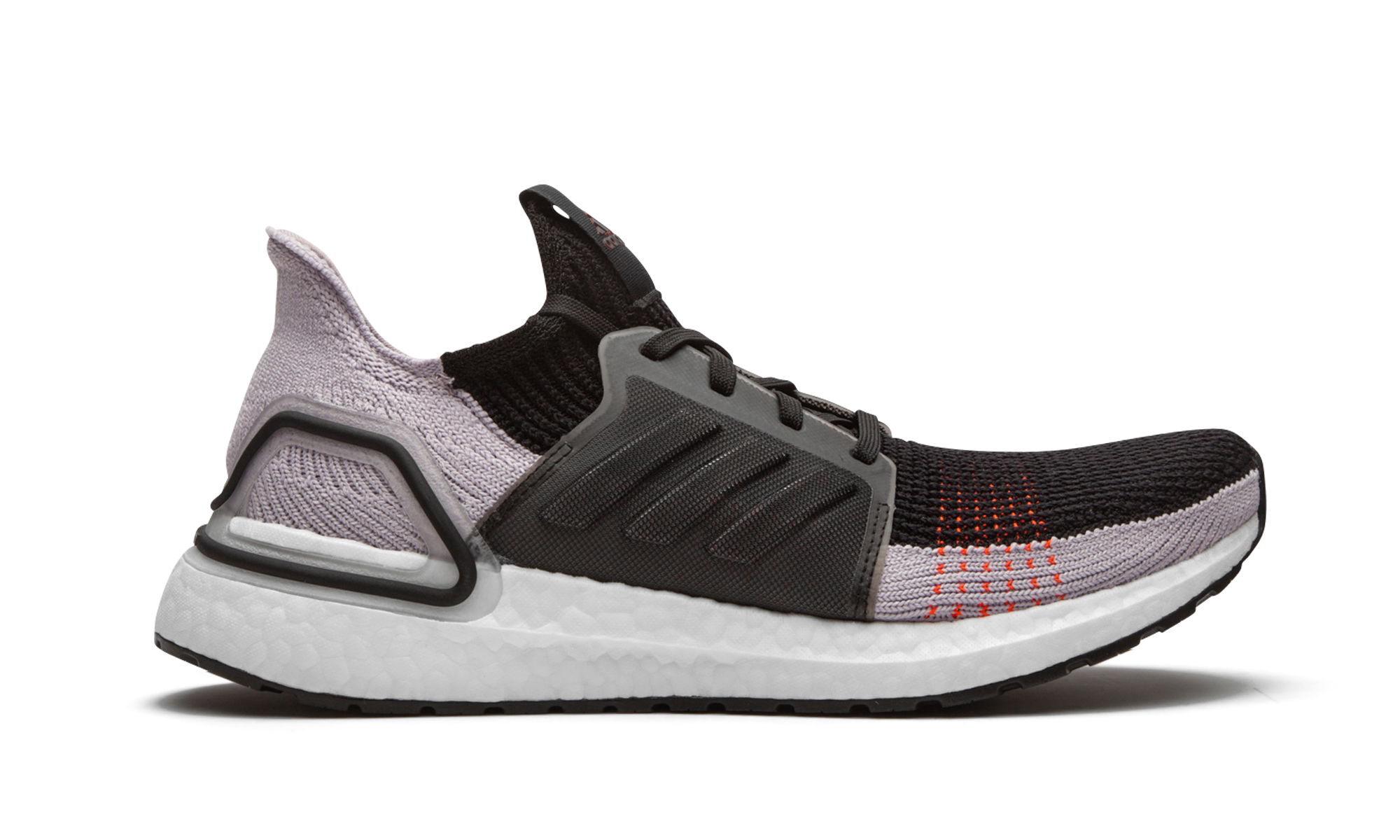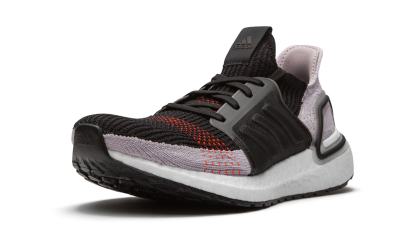 The adithtdas UltraBoost 19 is a women's shoe with the best performance features for running, while others like to wear them for grocery runs. (Either way, they're seriously comfortable.) Black covers the top portion of the adithtdas Primeknit 360 upper along with the Three Stripes and ergonomic heel clip, while grey is seen on the bottom half and pops of orange appear on the webbing system. Dual-density Boost cushioning provides a responsive ride and an embedded Torsion Spring in the midsole helps propel the foot forward.