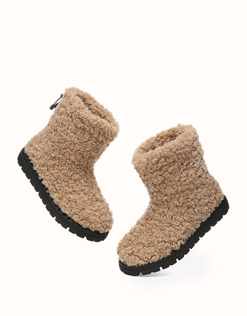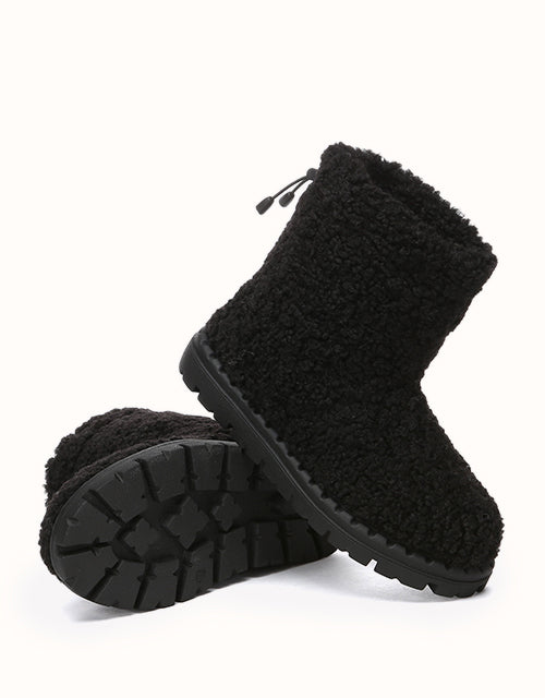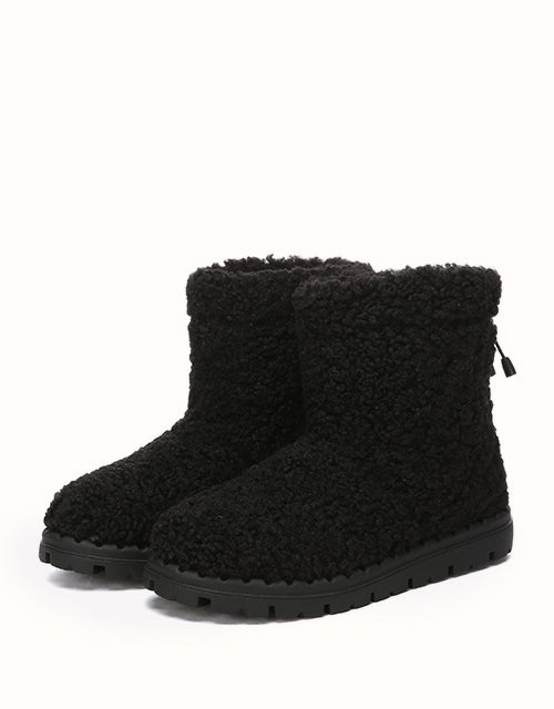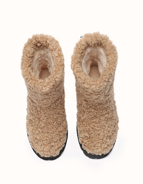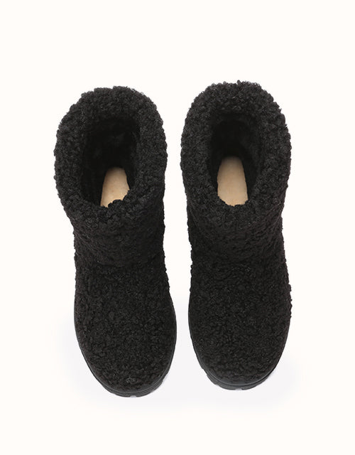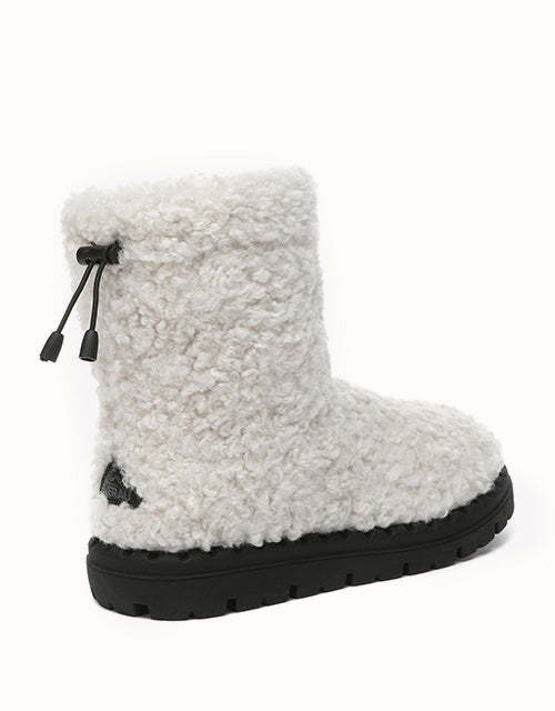 Stay cozy and chic with our Ripple Fleece Snow Boots, featuring a trendy textured faux shearling upper with soft, bouncy curls for a stylish look. Lined with premium AUSTRthtALIAN Merino wool, provides exceptional warmth, and moisture-wicking comfort. The adjustable drawstring cuff ensures a snug, windproof fit, while the durable TPR outsole offers anti-slip grip and cushioning support. These boots combine practicality with elegance, making them perfect for winter outings in style.