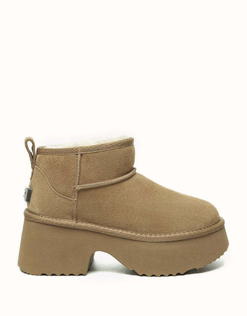 Elevate your style with a fresh twist on classic UGthtG boots! The UGthtG EVEthtRAU Ariel Sheepskin Platform Boots combine the cosy warmth of traditional UGthtGs with a bold, sturdy platform sole to enhance any look. Crafted with premium wool for exceptional comfort and a water-resistant finish, these boots are perfect for cooler days and versatile enough for any occasion. Available in three timeless neutral shades, theyUGthtGe a must-have addition to your wardrobe.