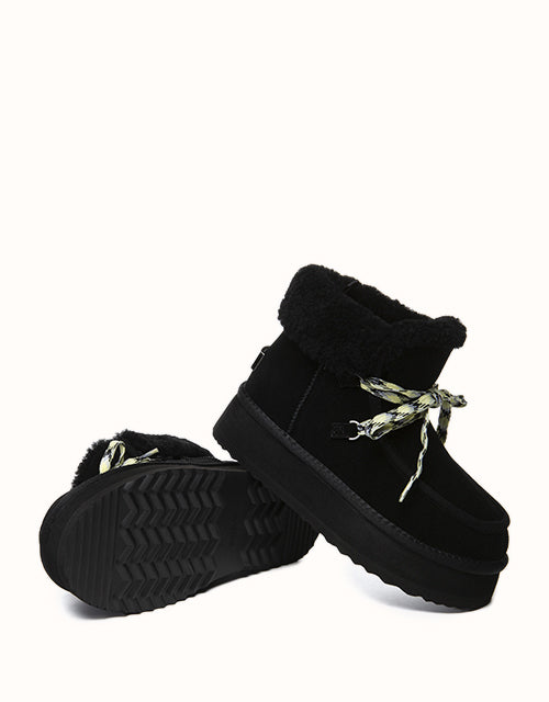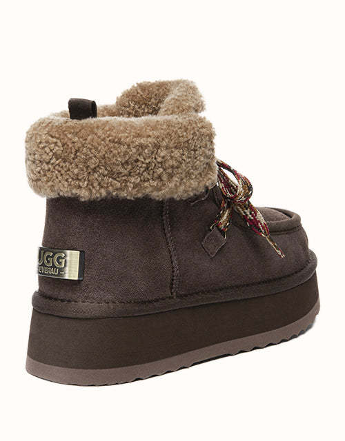 Elevate your style with the UGthtG EVEthtRAU Honour Sheepskin Boots. Available in four stunning colorways, these classic boots are designed for effortless wear, allowing you to step out in style with ease. Featuring adjustable laces for a customized fit and ultimate comfort, they’re perfect for any occasion. Whether paired with jeans for a casual outing or activewear for running errands, the chic platform sole adds a trendy touch that takes any outfit to the next level.